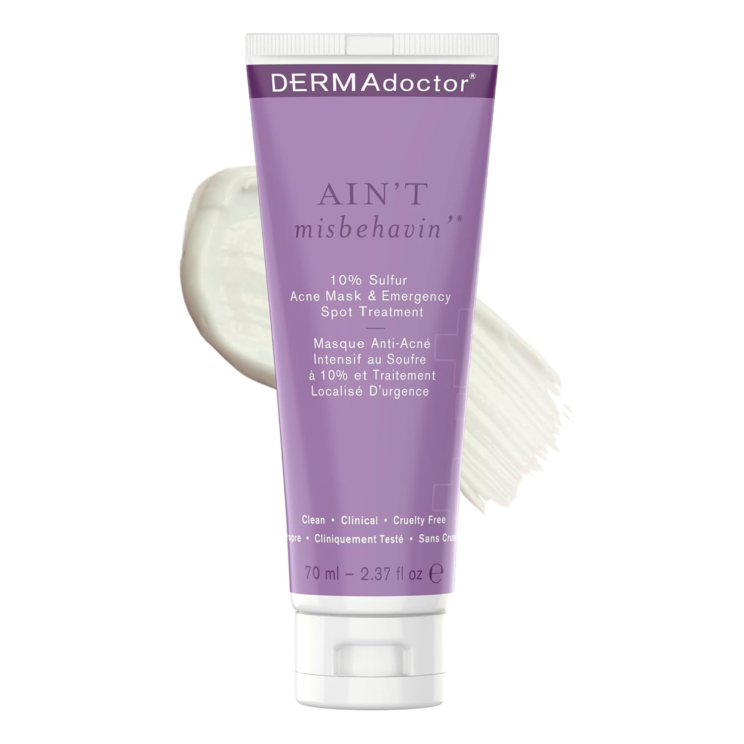 DERMAdoctor Sulfur Acne Treatment - Clay Mask & Acne Spot Treatment | Face Mask Blackhead Remover - Bentonite Clay Detox | Non-Irritating Non-Drying Calming & Soothing with Natural Exfoliants - 2.3 Oz