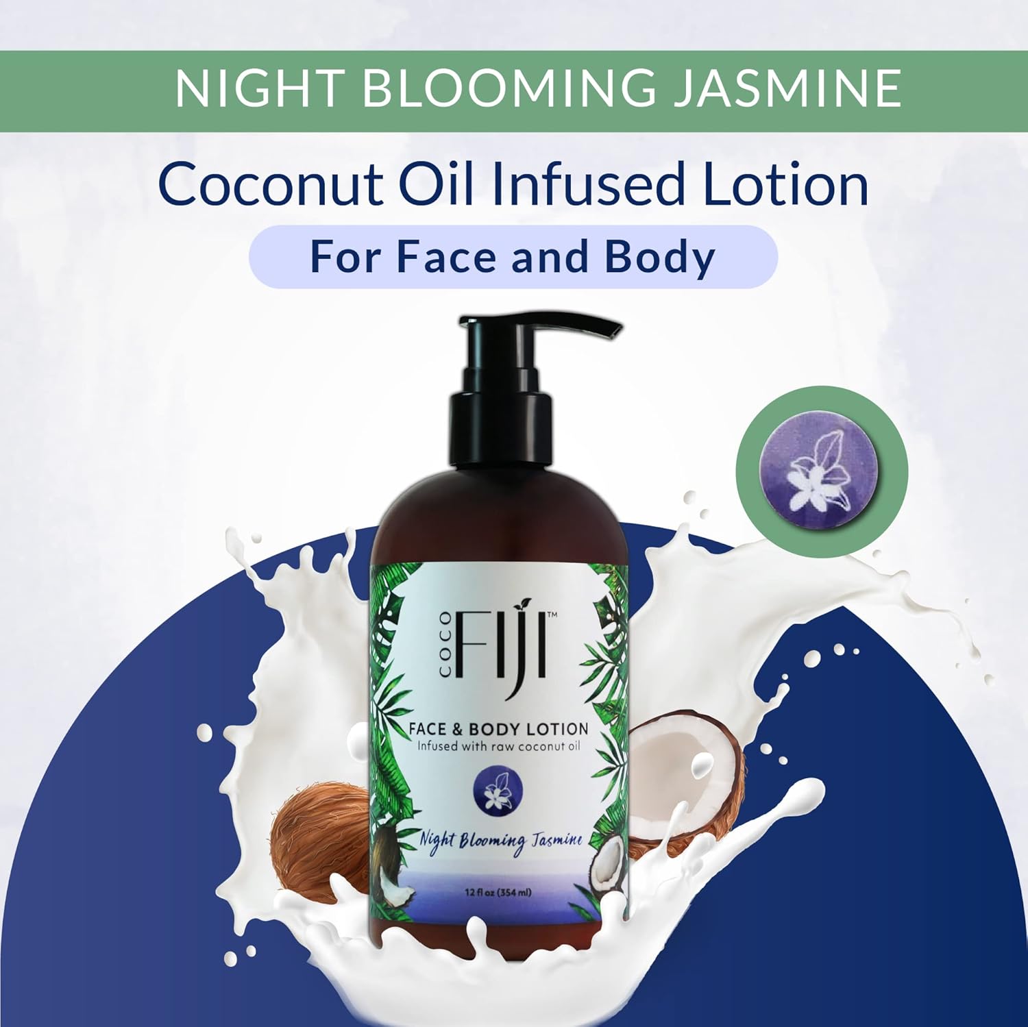 Coco Fiji Face & Body Lotion Infused With Coconut Oil | Lotion for Dry Skin | Moisturizer Face Cream & Massage Lotion for Women & Men | Night Blooming Jasmine 12 oz, Pack of 1