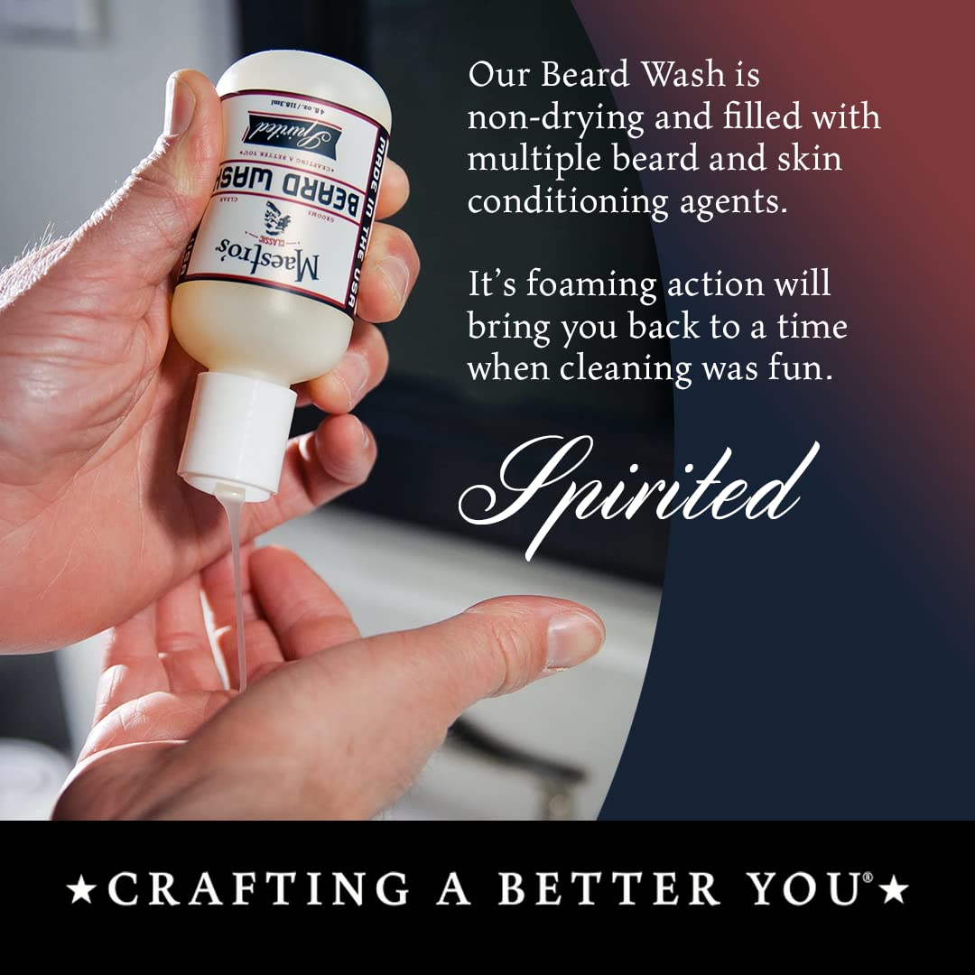 Maestro's Classic BEARD WASH | Anti-Itch, Deep Cleaning, Non-Drying, Fully Hydrating Gentle Cleanser For All Beard Types & Lengths- Spirited blend, 4 Ounce