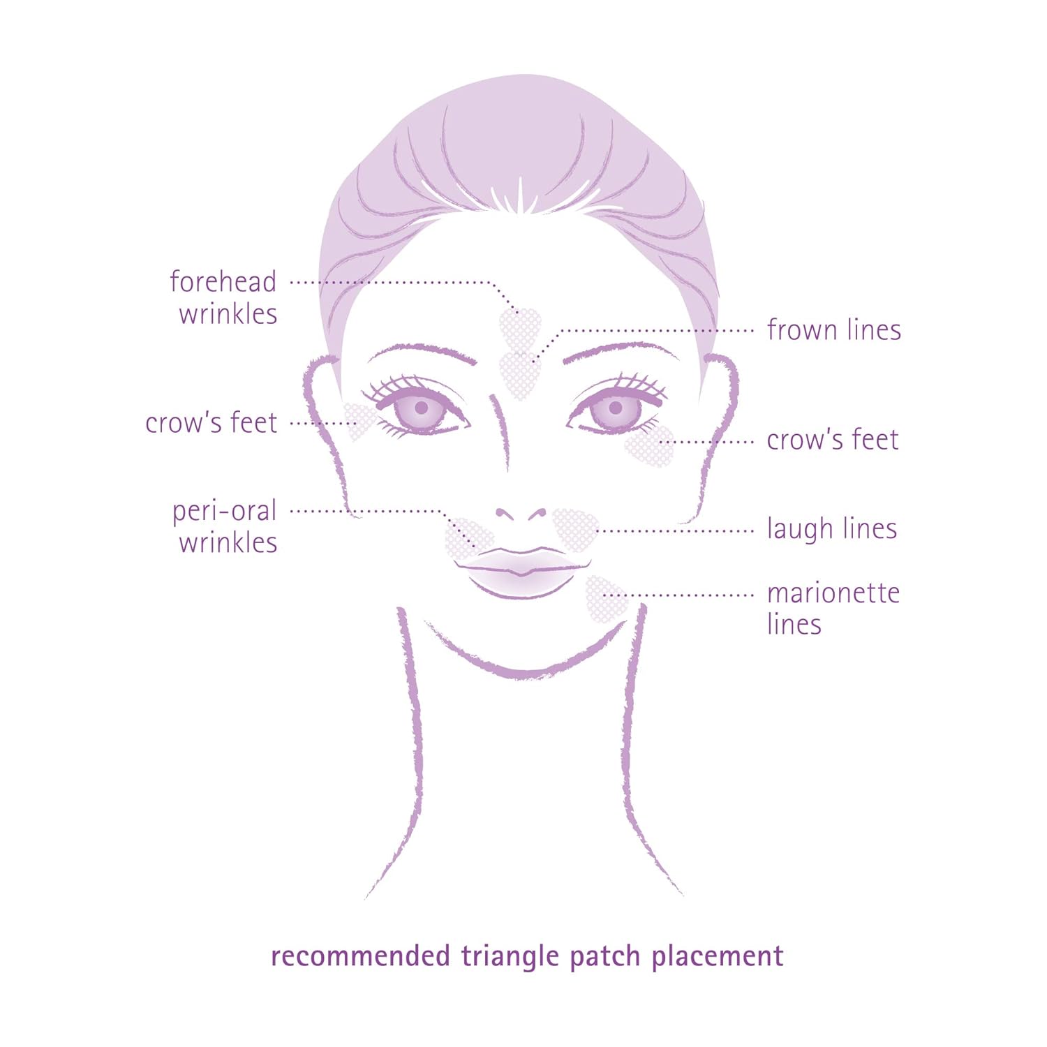 - TARGETED WRINKLE REDUCTION: Designed for forehead wrinkles, frown lines, crow’s feet, laugh lines, smile lines, eleven lines, and lip wrinkles, our triangle-shaped patches deliver precise wrinkle smoothing for all areas of the face.