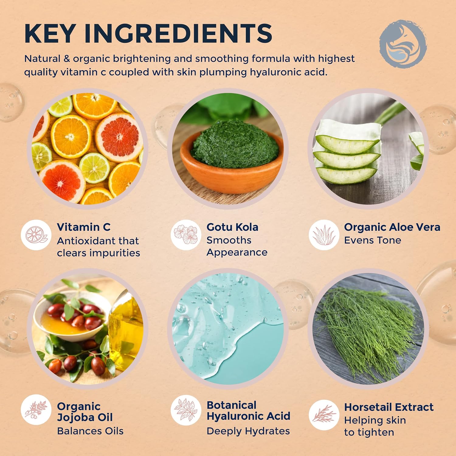 - ALL NATURAL VITAMIN C FACIAL SERUM - Brighten & Hydrate skin, restore firmness & elasticity to skin, even skin tone, fade fine lines and wrinkles & dark spots, while helping to fight back against pollutants and sun damage.