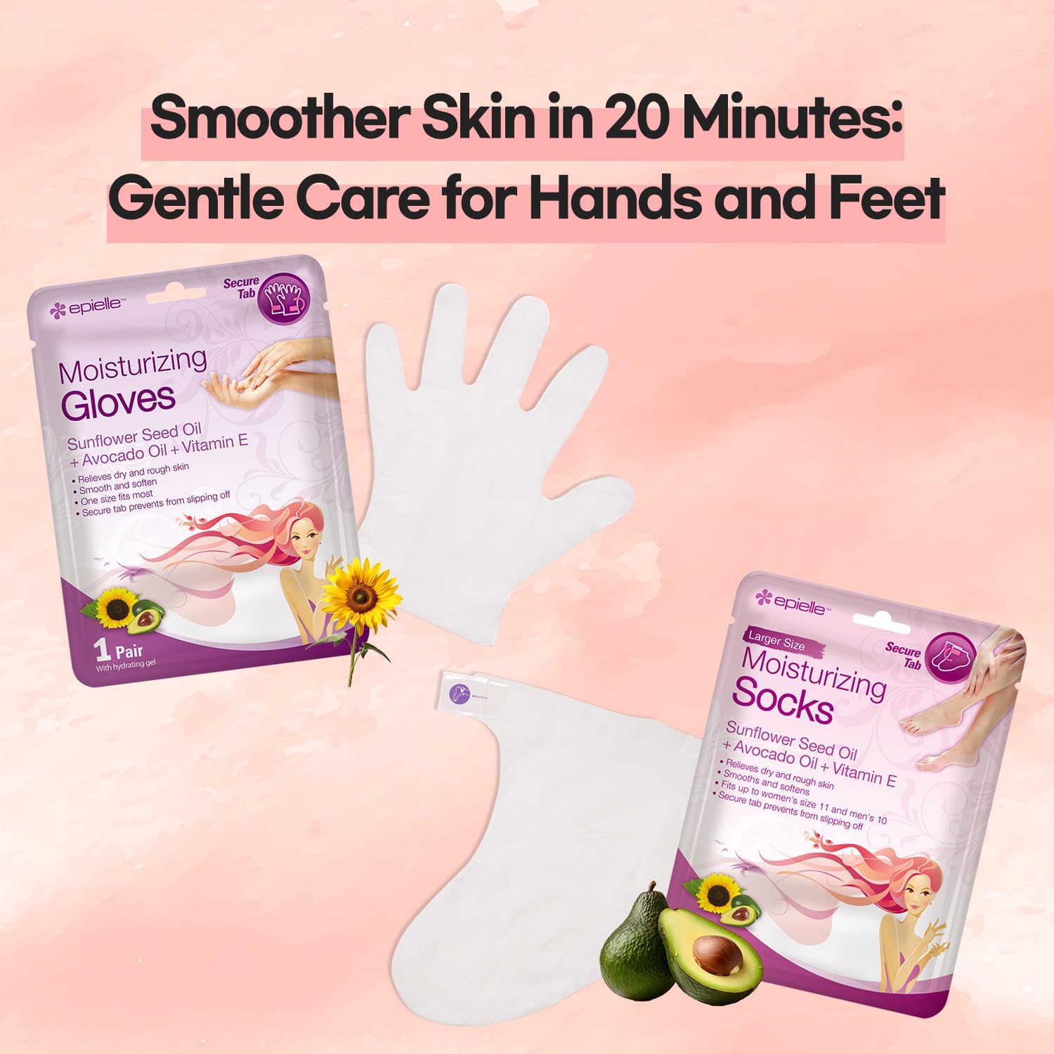 Epielle Moisturizing Hand & Foot Masks 12 Pairs, Soften Dry Hands & Cracked Heels with Sunflower Seed Oil & Avocado Oil, Korean Skin Care, Spa Self Care Gifts for Women, 6 Gloves & 6 Socks