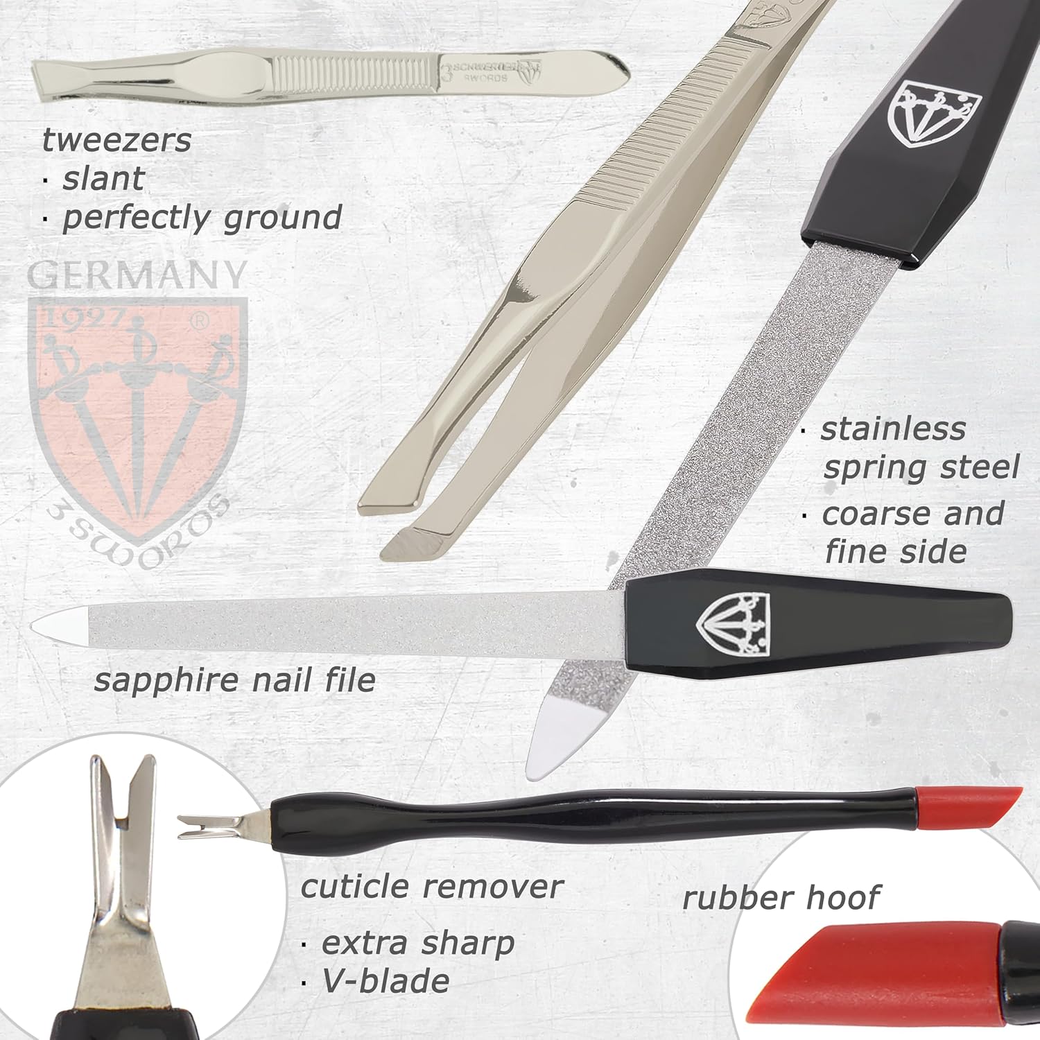 3 Swords Germany – brand quality 8 piece manicure pedicure grooming kit set for professional nail care with synthetic leather case black - Made in Germany