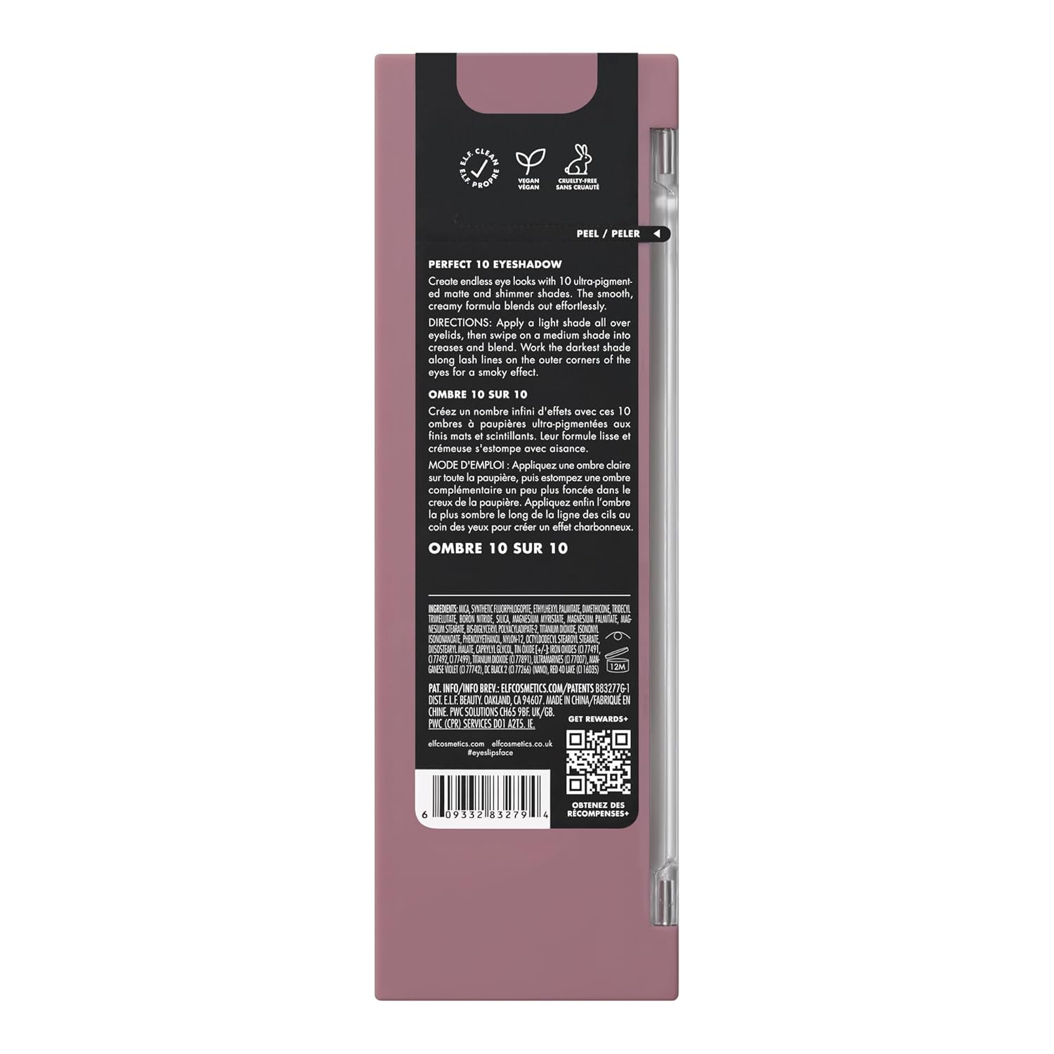 - 10 ULTRA-PIGMENTED SHADES: Make your eyes the prize with the e.l.f. Perfect 10 Eyeshadow Palette. Get inspired with this 10-color eye palette, perfect for creating a variety of eye-catching looks.