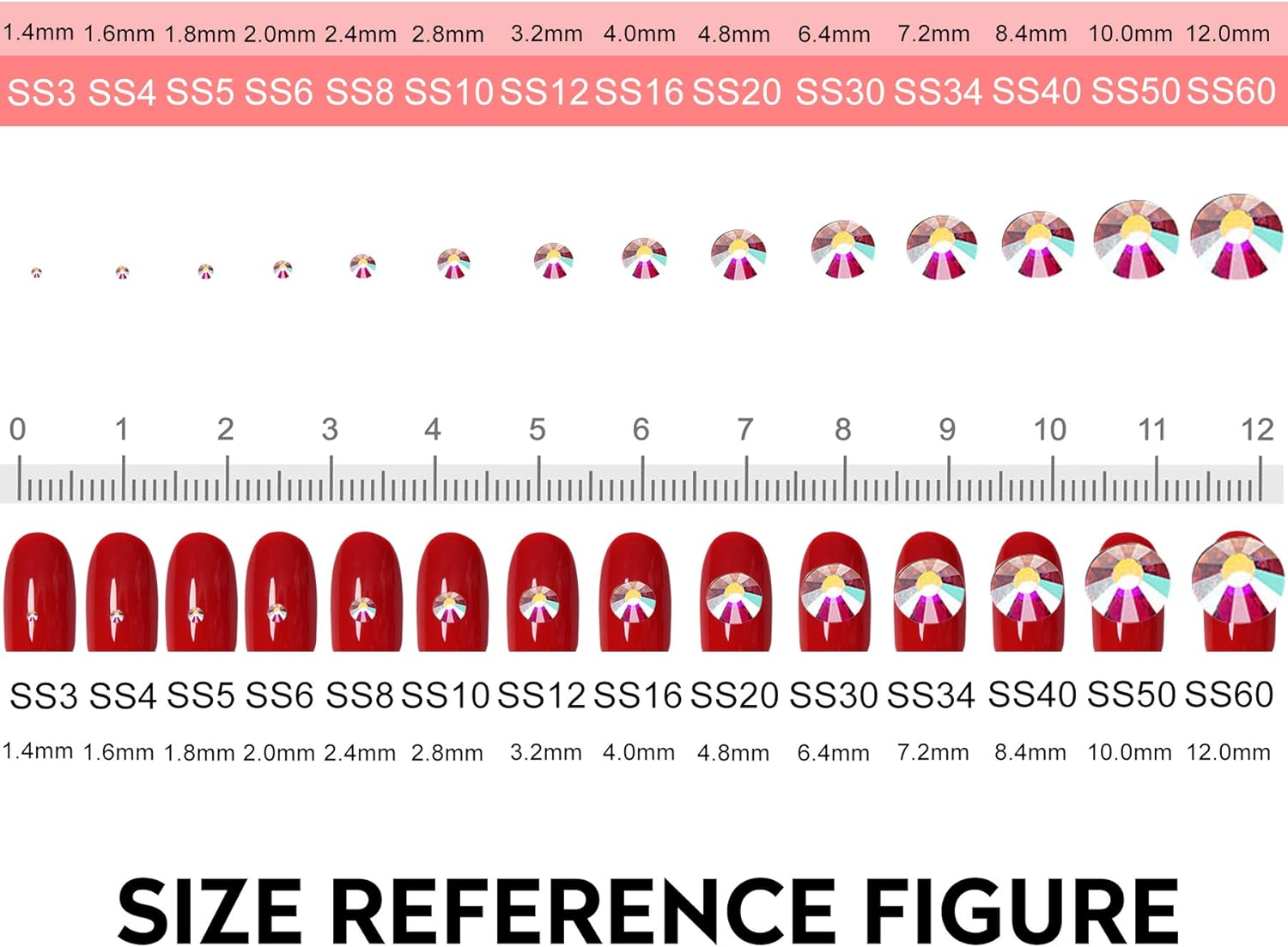 - Choice notice: Please watch the size you need, you can refer to the size chart, these small sizes are fit for nail art, if you need to decorate your clothes, shoes etc. you may need larger size. You can search Jollin rhinestones to find large size and other color stones.