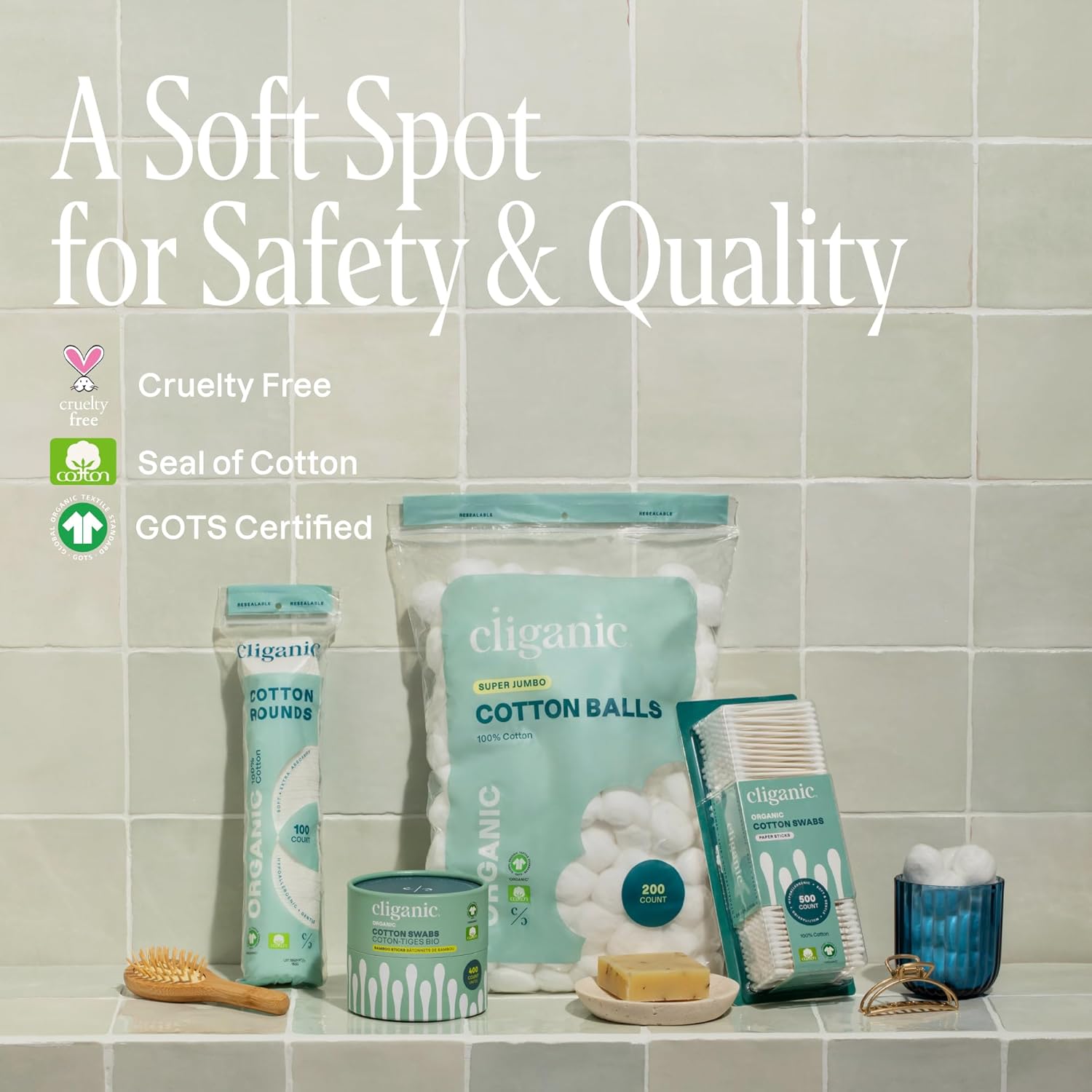 Cliganic Premium Cotton Rounds | Makeup Remover Pads, Hypoallergenic, Lint-Free | 100% Pure Cotton (6 Pack)
