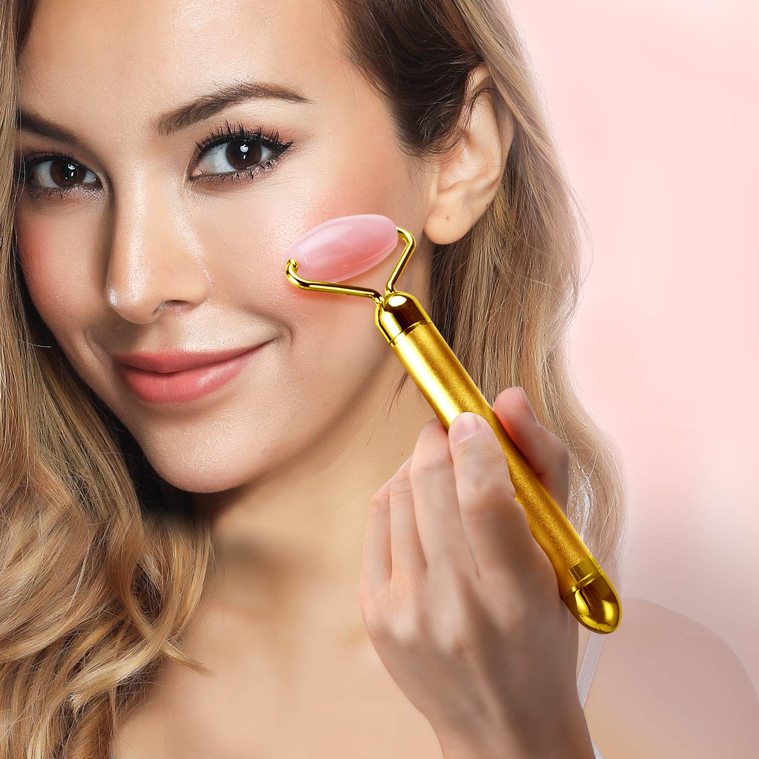 DANGSHAN 2-in-1 Electric Jade Roller Massager Facial Roller & Face Massager, Rose Quartz