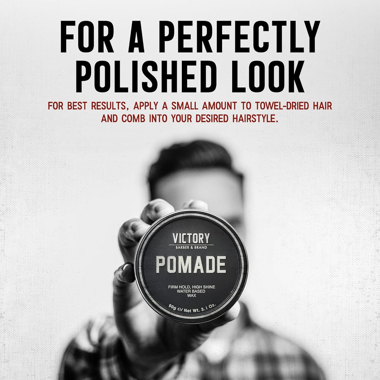 - PERFECTLY POLISHED – Victory Brand Pomade gives a firm hold and smooth shine that polishes up classic, combed hairstyles better than the rest. Use Victory Pomade to transform even the most ungroomed brute of a man into an absolute gentleman, with a look that would make his grandpa proud.