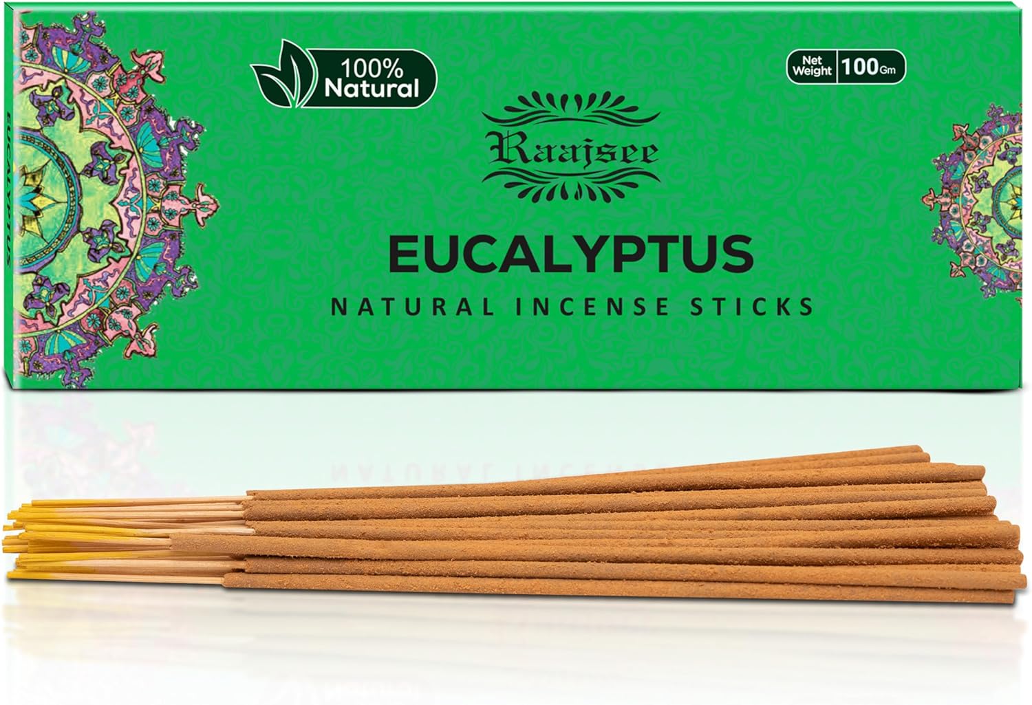 Raajsee Incense Sticks Eucalyptus 100 gm Pack-100% Pure Organic Natural Hand Rolled Free from Chemicals-Perfect for Church, Aromatherapy,Relaxation,Meditation,Positivity & Sensual Therapy