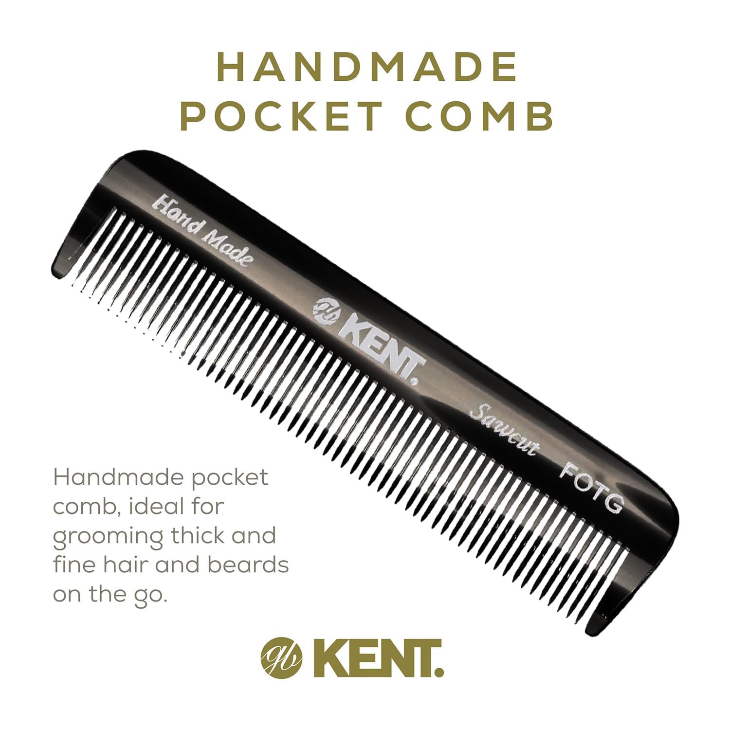 Kent FOT Black Graphite Fine Tooth Comb for Men - Handmade Pocket Comb for Travel, Styling, Fine or Thinning Hair, Mustache and Beard Care Handpolished Saw-Cut Made in England