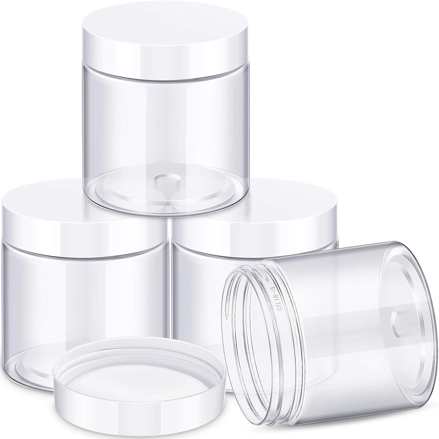 • What you receive: there are 4 pieces plastic jars with white screw-on lids. They are durable and refillable, measuring about 5.2 cm/ 2.05 inches in diameter, 4.3 cm/ 1.7 inches in height
