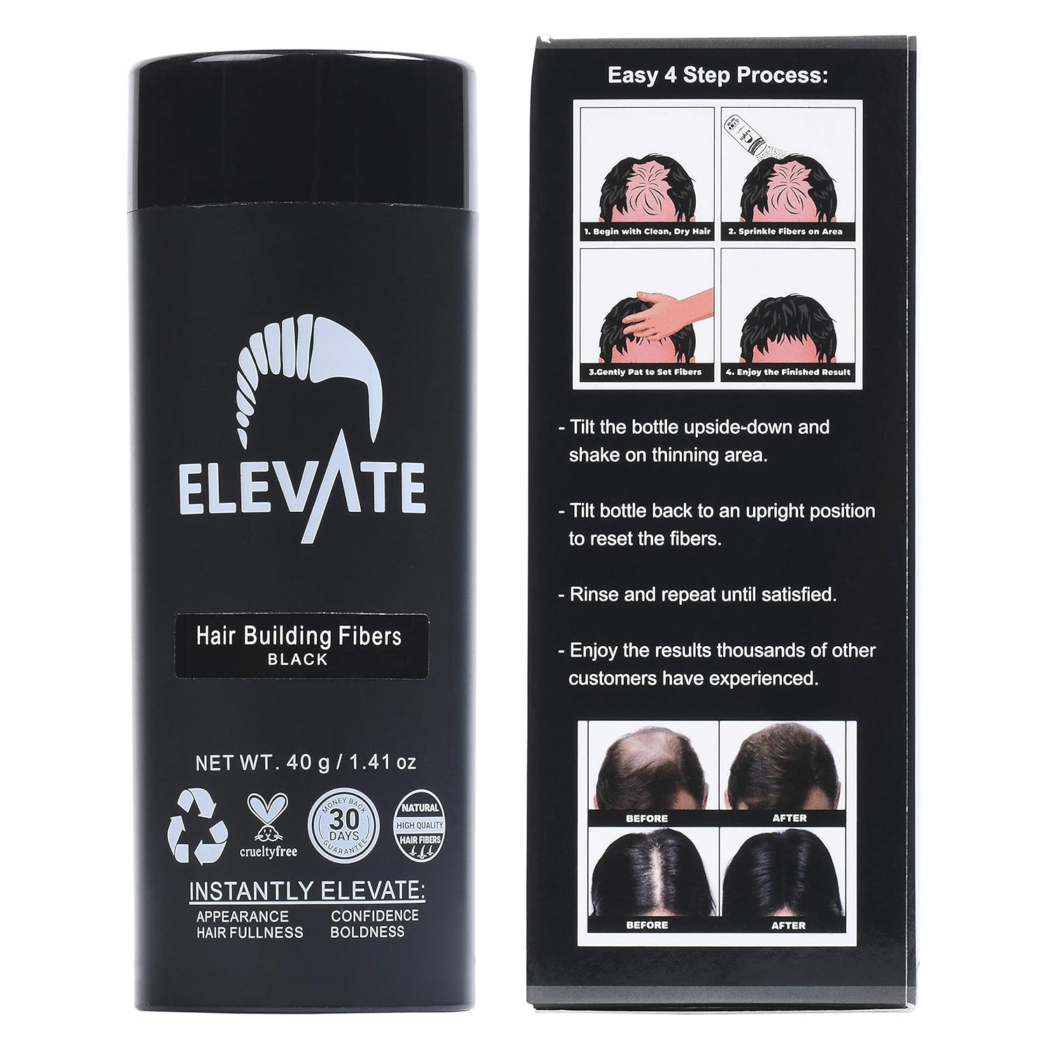 - ELEVATE 100% SATISFACTION GUARANTEE: Try the Elevate Hair Fibers Kit and if you donโt love it, we will refund you right away! Comes with a 100% Customer Satisfaction Hassle Free Money Back Guarantee!