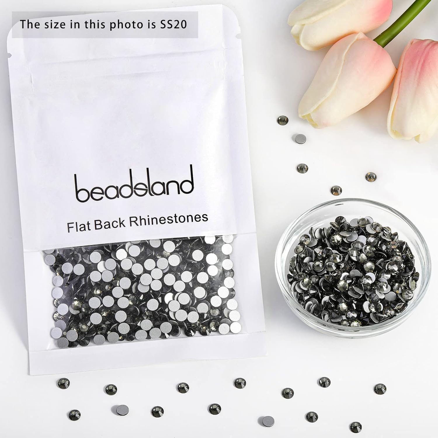 Beadsland 1440pcs Flat Back Crystal Rhinestones Round Gems for Nail Art and Craft Glue Fix,Black Diamond,SS20,4.6-4.8mm