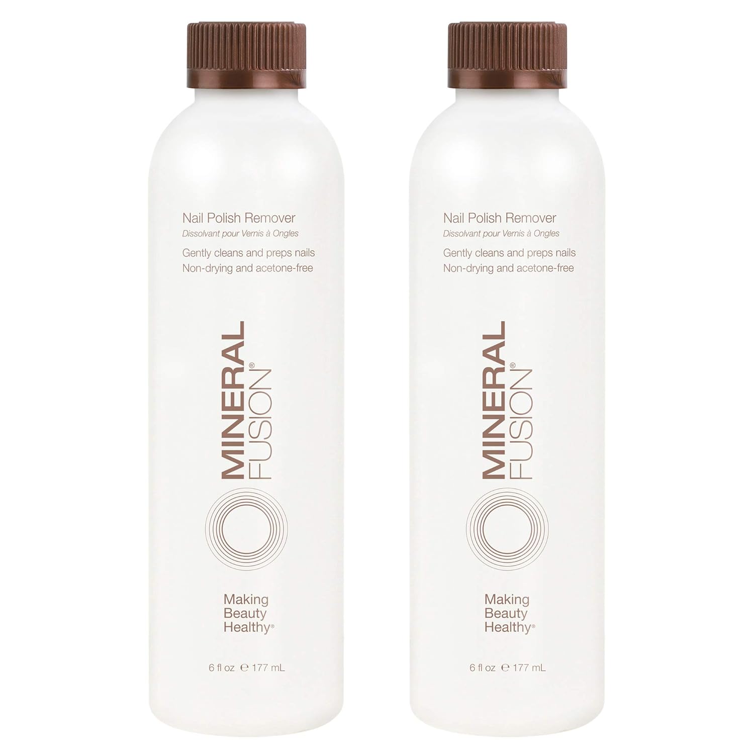 Mineral Fusion Acetone Free Nail Polish Remover, Gentle, Non-Drying, Regular & Gel Polish, 6 fl oz (2 Pack), Vegan & Cruelty-Free Nail Care for Women and Men