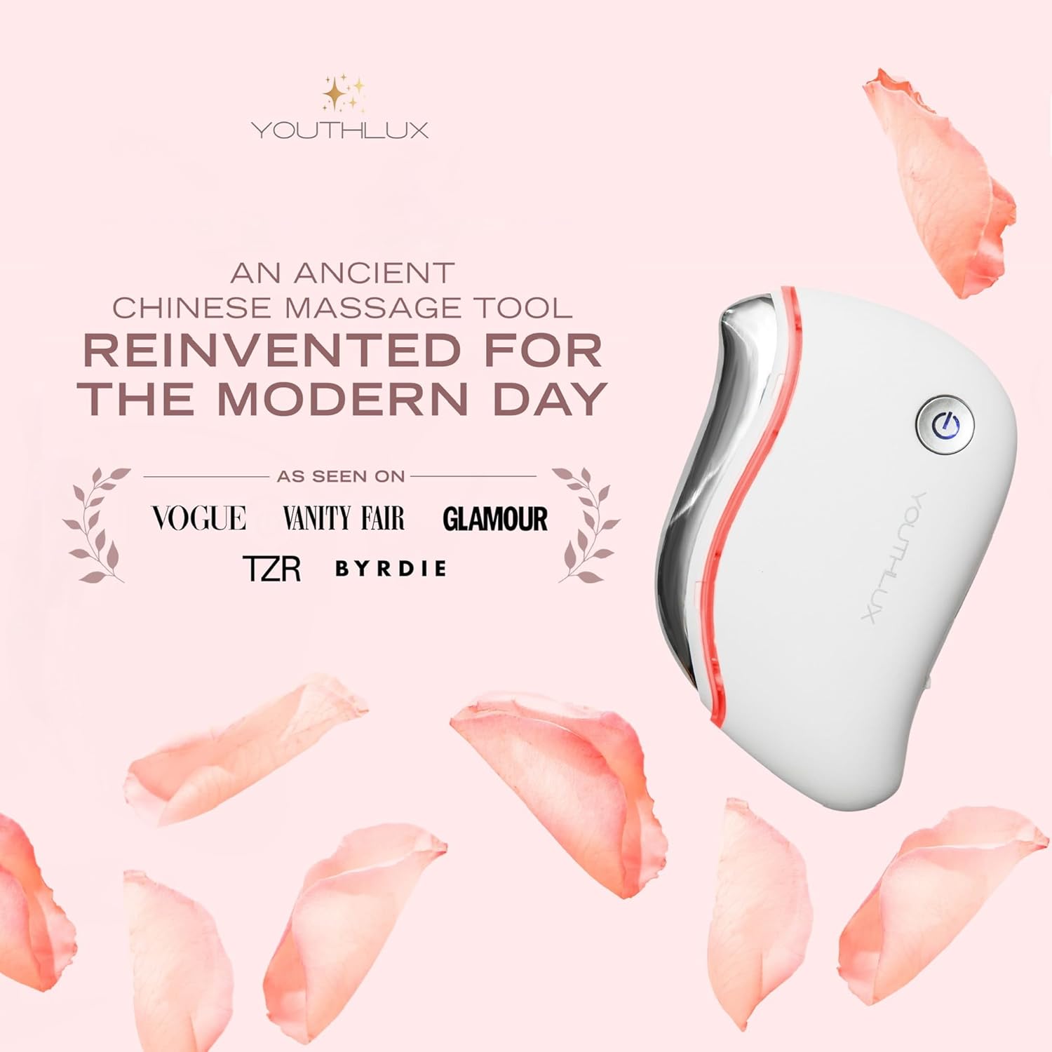 - Advanced Heated Gua Sha Tool – Upgrade your skincare with this electric gua sha device, combining traditional massage with warming (45°C), vibration at 8,000 rpm, and red LED technology for a radiant, refreshed look.