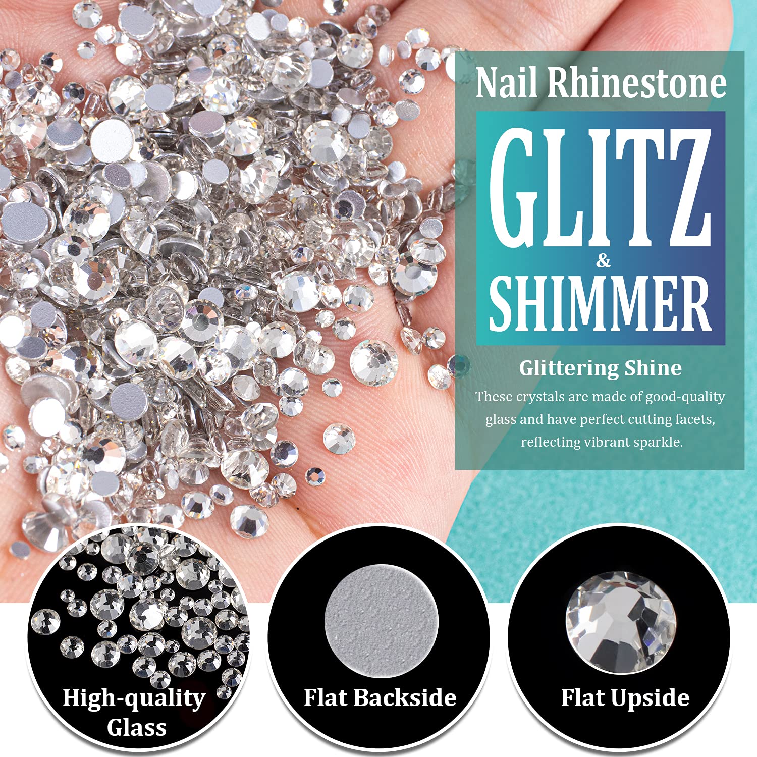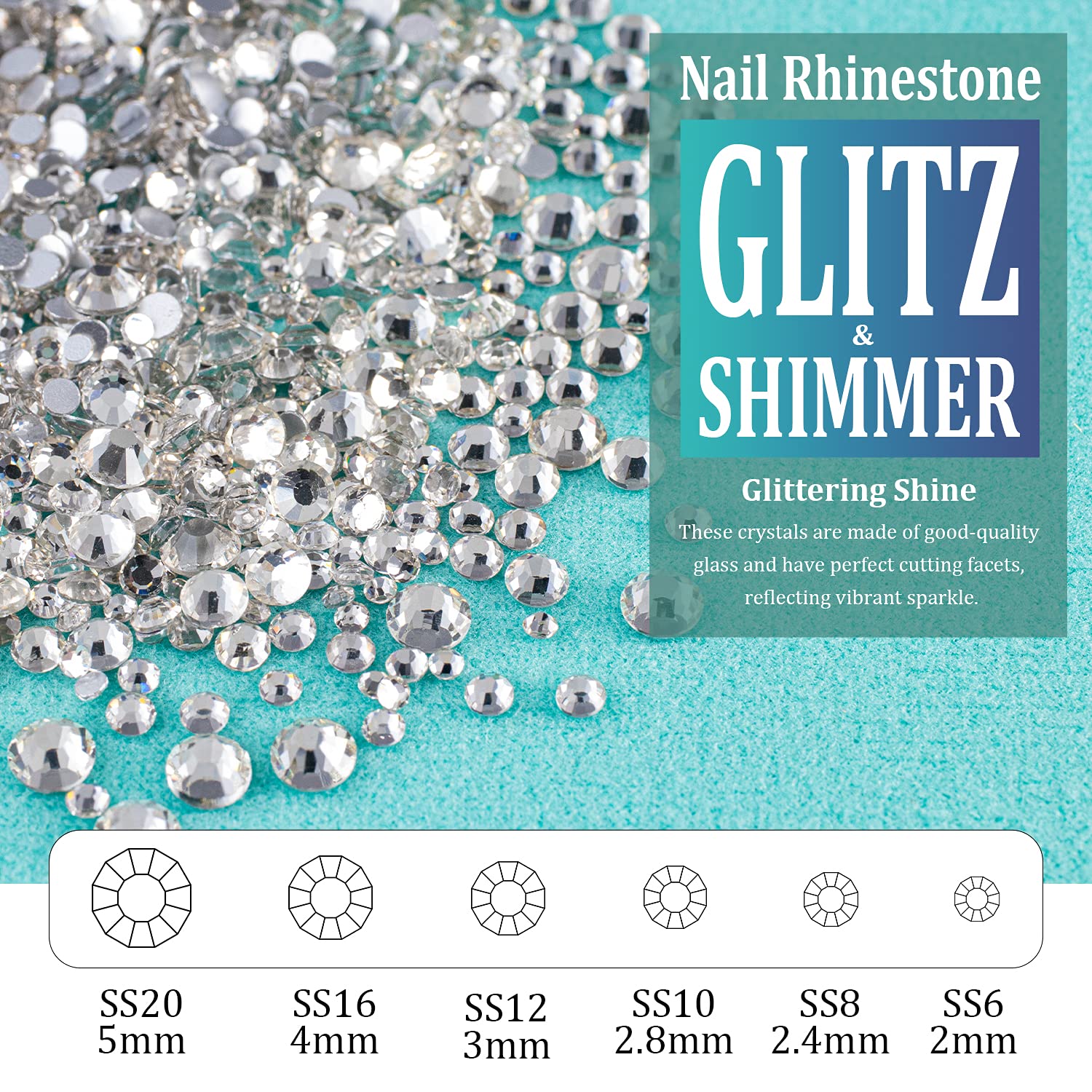 - ❤BRIGHT & VIBRANT SPARKLE -- The Nail Crystal Is Made of High Quality Glass And Has Delicate and Exquisite Shine. The Perfect Cutting Facets Endow Each Bead With Vibrant Glitz And Shimmer.