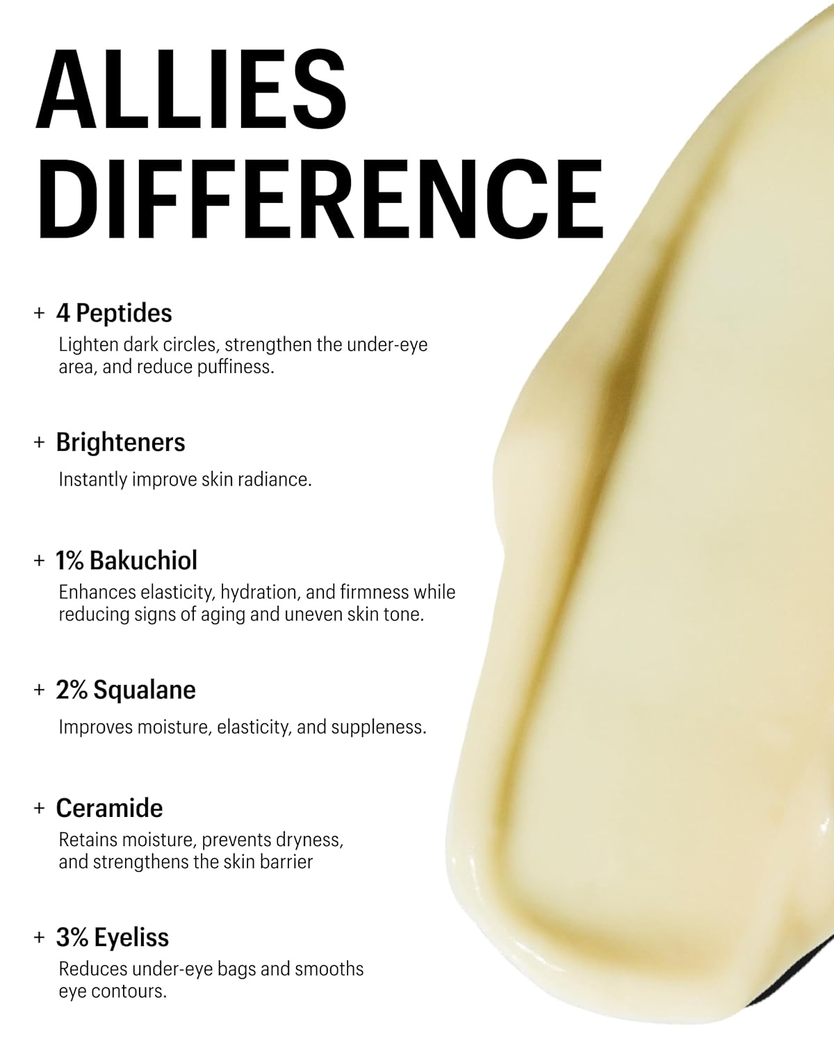 Allies of Skin Peptides Firming Eye Cream | Under Eye Moisturizer for Dark Circles & Puffiness | Bakuchiol, Ceramides and Vitamin C for Fine Lines and Under Eye Area | 0.5 oz