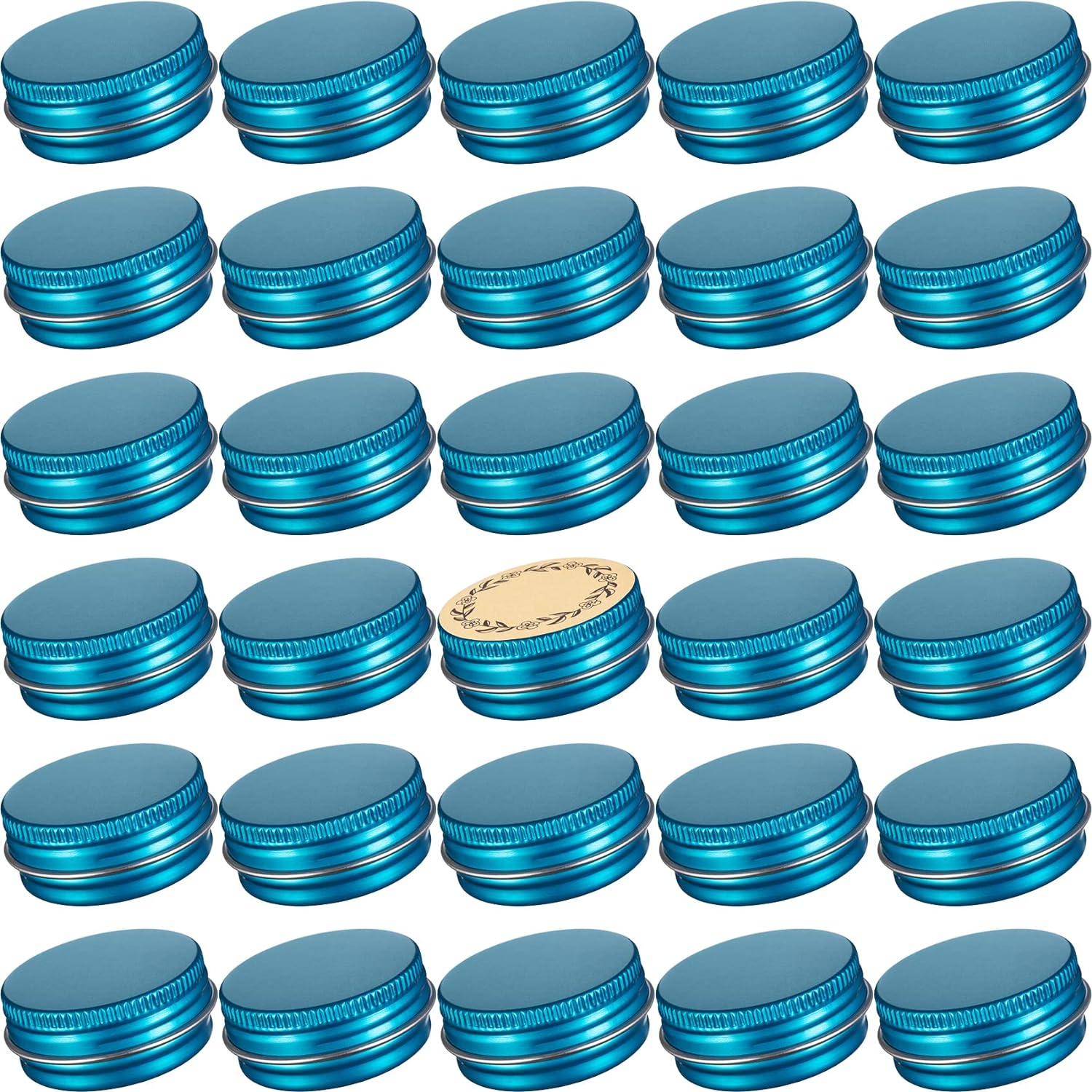 0.5 oz Screw Top Aluminum Tin Jar with Screw Lid and Blank Labels (Lake Blue - Pack of 32)