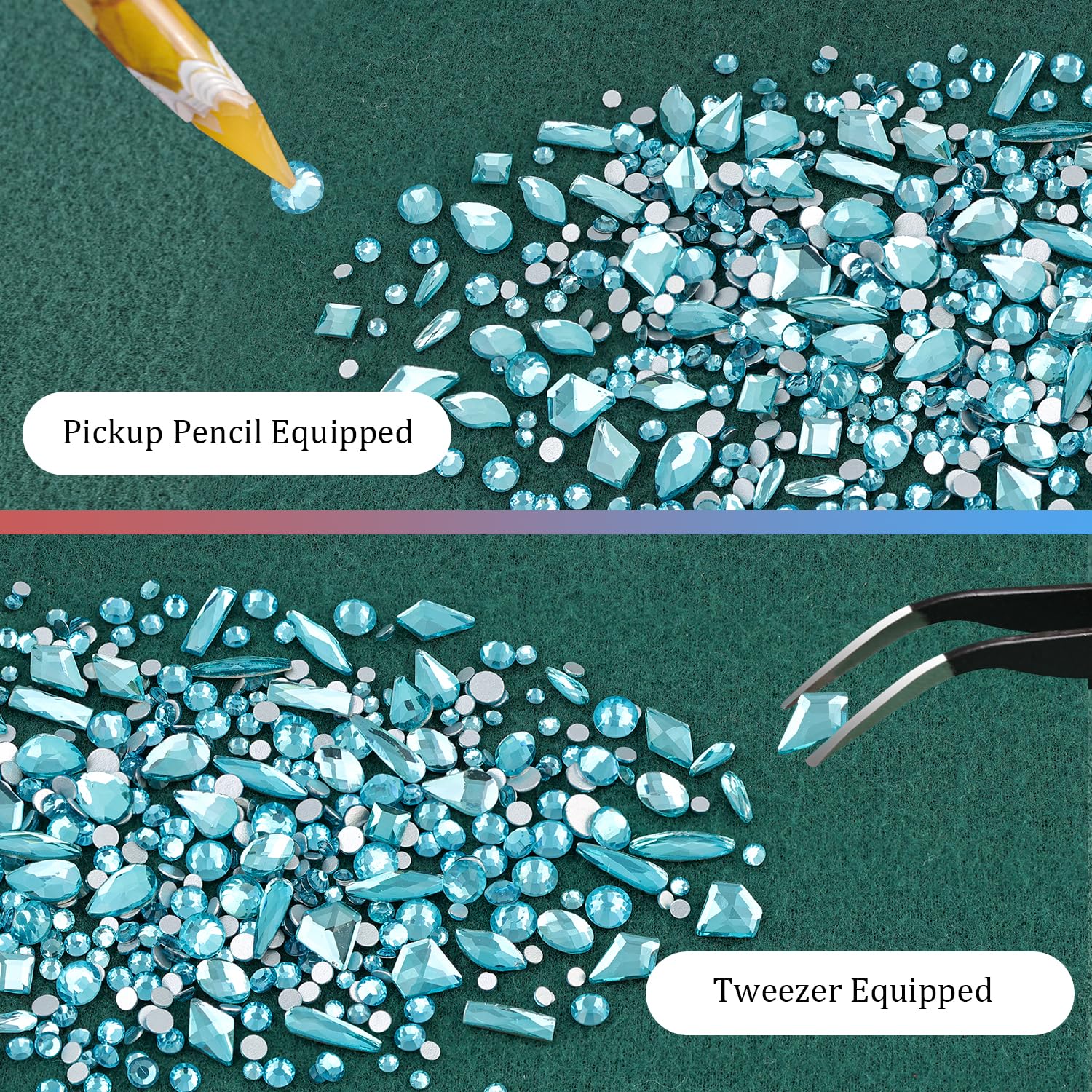 - ❤WHAT YOU WILL RECEIVE -- 1 Box of 6 Sizes Lake Blue Round Glass Nail Crystal Rhinestones Beads (Totally About 1720 PCS); 1 Box of 12 Different Shaped Styles Lake Blue Glass Stones Gem (About 120 PCS; 10 PCS for Each Shape); 1 PCS Rhinestone Picker Pencil; 1 PCS Tweezer. The Well Equipped Rhinestone Set Is Suitable for Both Professional Nail Technician and Inexperienced Starter for Nail Art.