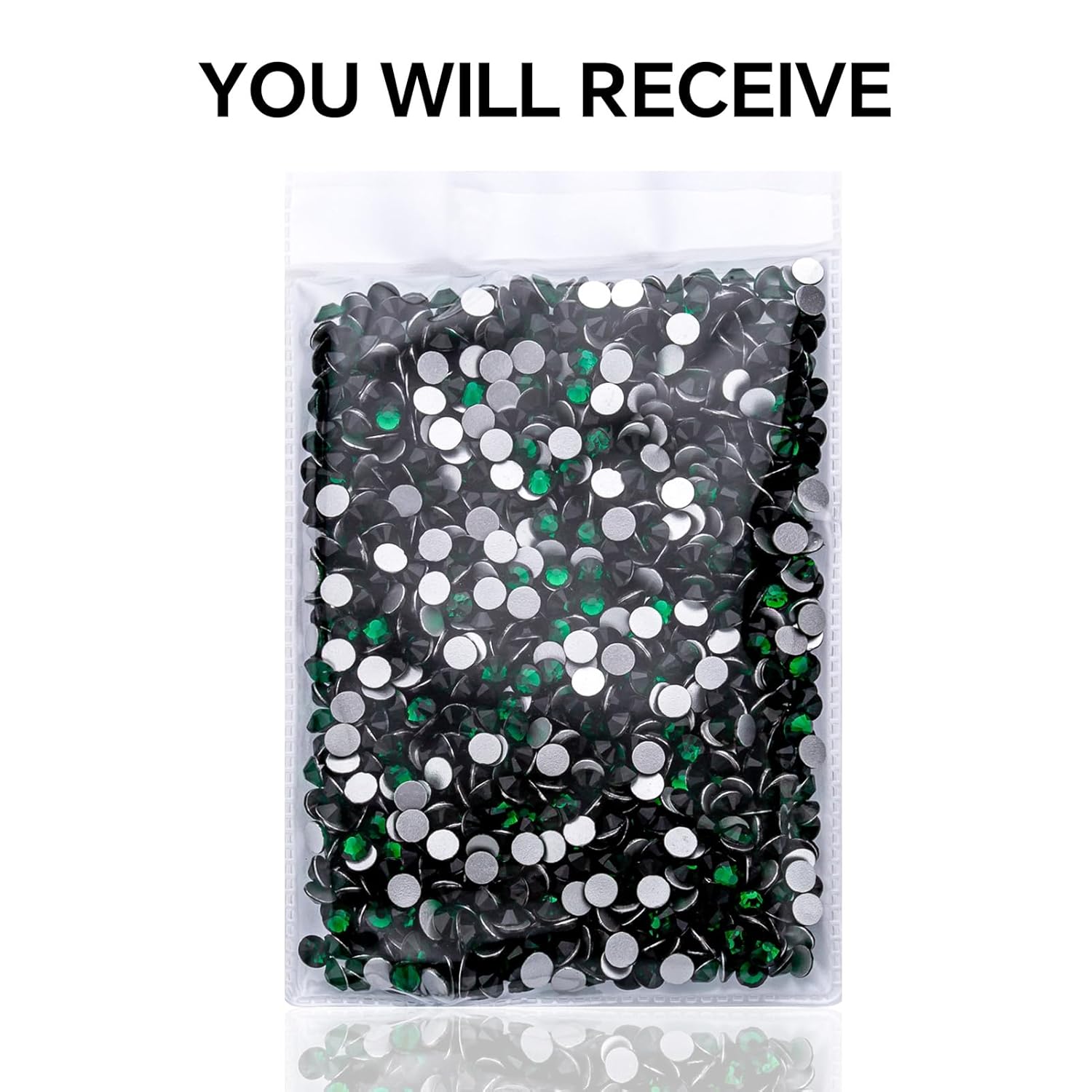 288Pcs Dark Green Crystal Rhinestones,Glass Flatback Rhinestones Gemstones for Nail Face Makeup Art Crafts Clothes Decoration -(SS30,6.5mm,Dark Green)