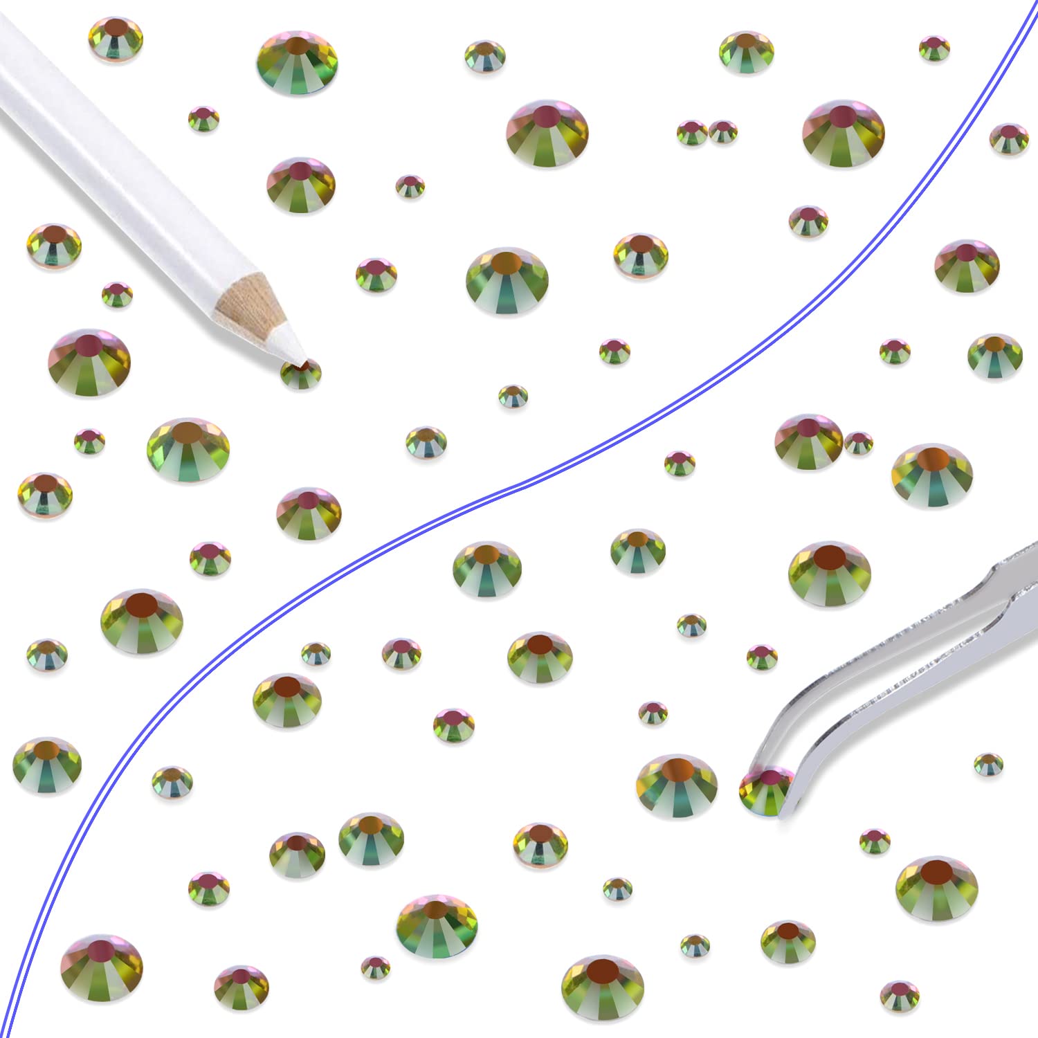 - Approx 6000 pcs of good quality sparkly flatback glass rhinestones with tweezers and 2 picker wax pencils help you easily pick up and set rhinestones in all your jewelry.