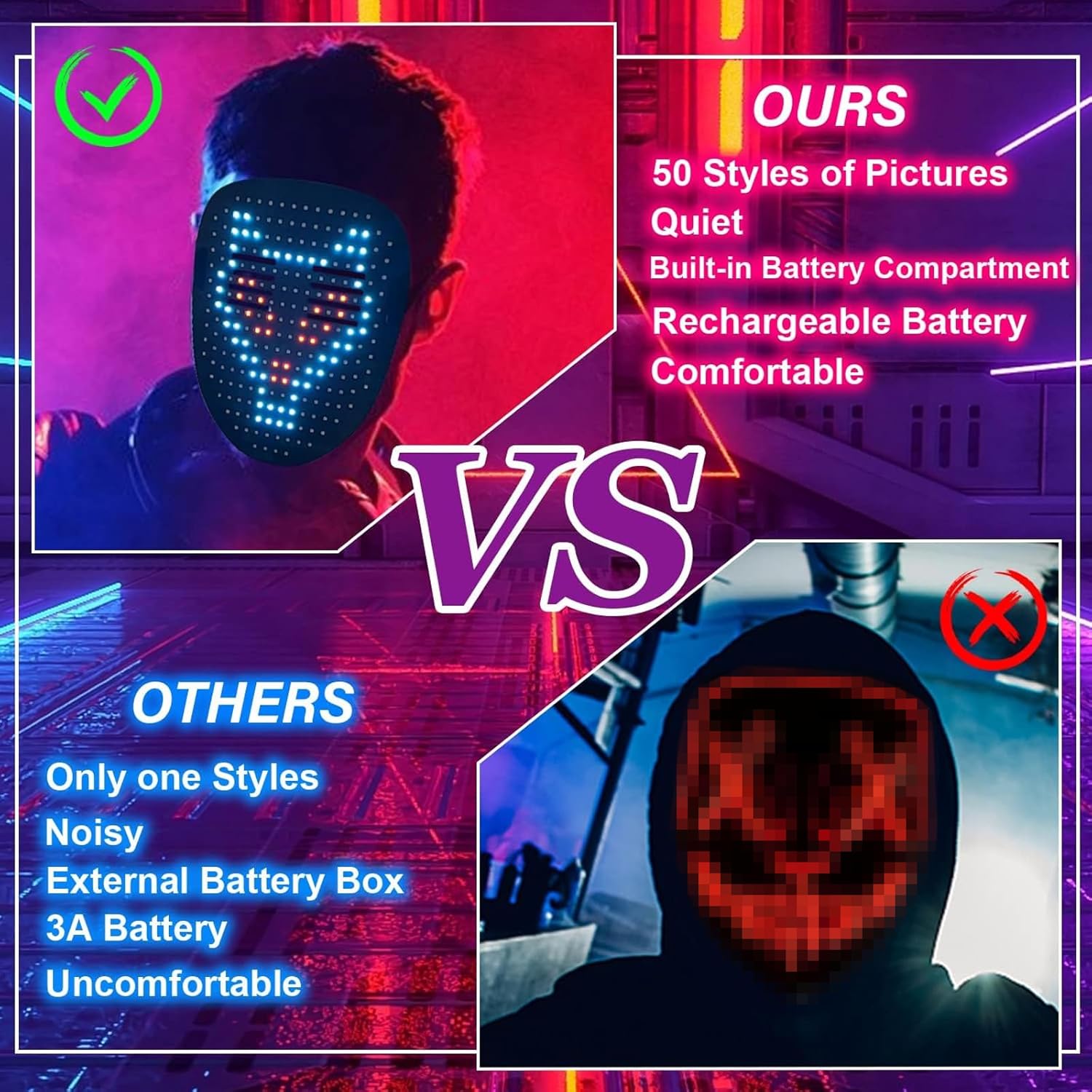 - Led Masks For Adopts Led Full Mask Design With An Adjustable Strap,Which Is Very Suitable For Cosplay,Masquerade,Birthday Party,Halloween,Christmas,Carnival,Electronic Music Festival And Other Occasions.