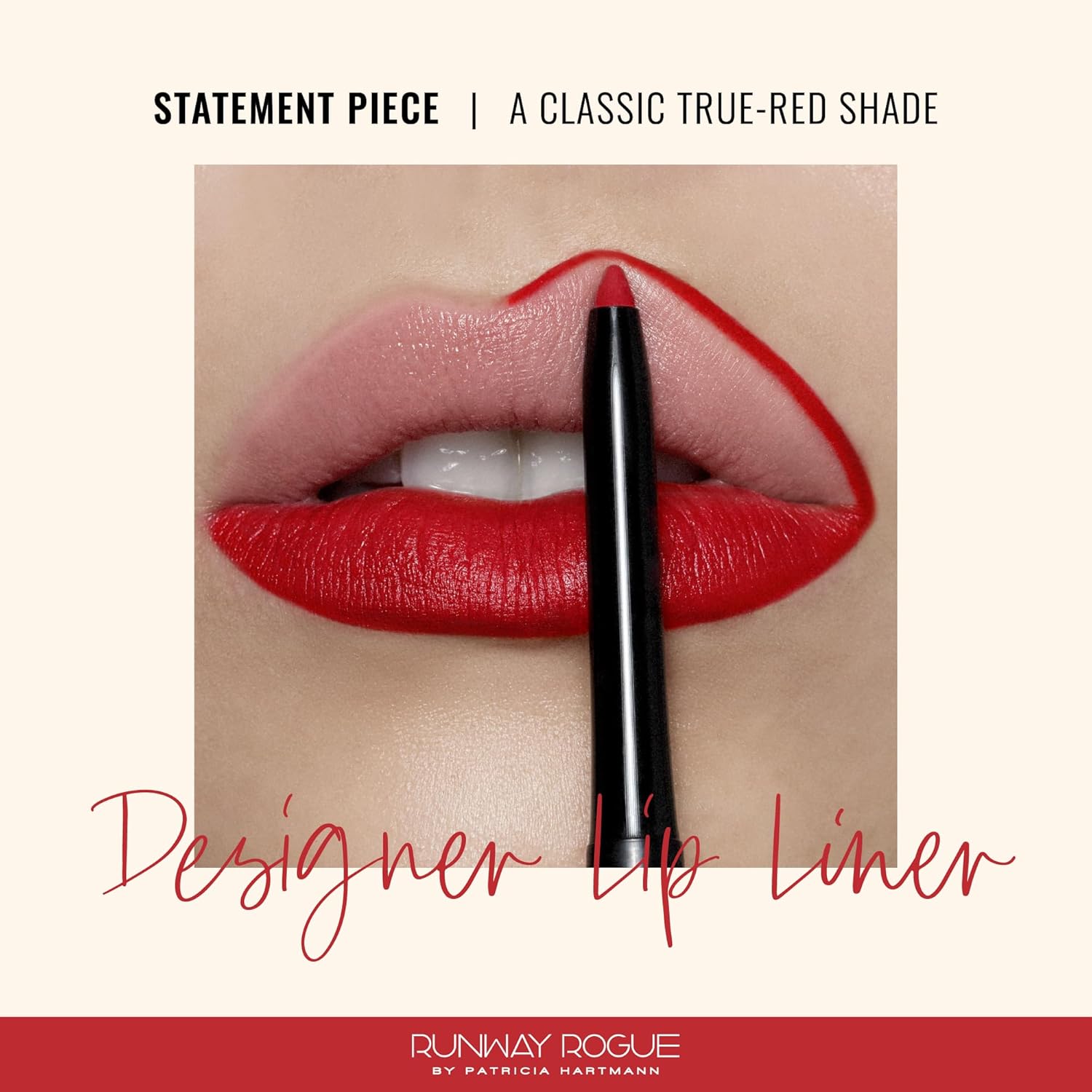 Runway Rogue Designer Liner Lip Pencil, Matte Classic True-Red Lip Liner Pencil and Lip Liner Sharpener, ‘Statement Piece’