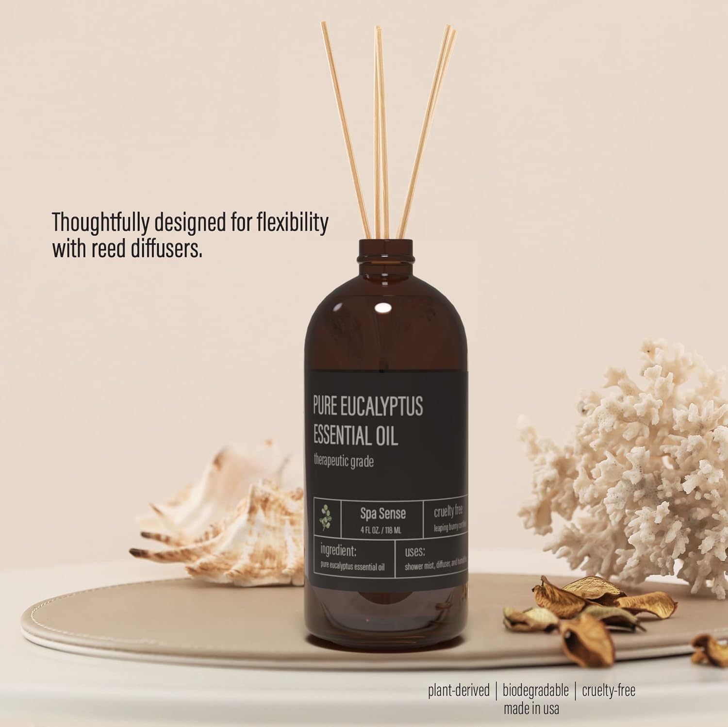 - 100% Pure Eucalyptus Oil - Spa Sense aromatherapeutic eucalyptus oil spray is made entirely with therapeutic grade pure eucalyptus essential oil, 100% pure oil, not blended or diluted. Delivers an aromatic and stimulating luxury spa experience in the comfort of your home, refreshing your shower space and personal cleansing routine, Made in USA with globally sourced components