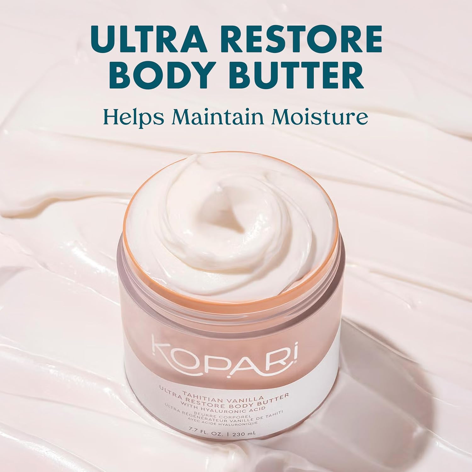 Kopari Ultra Restore Body Butter, Whipped Lightweight Formula, Hyaluronic Acid & Mango Butter, Deep Long-Lasting Moisture, Tahitian Vanilla 7.7 oz