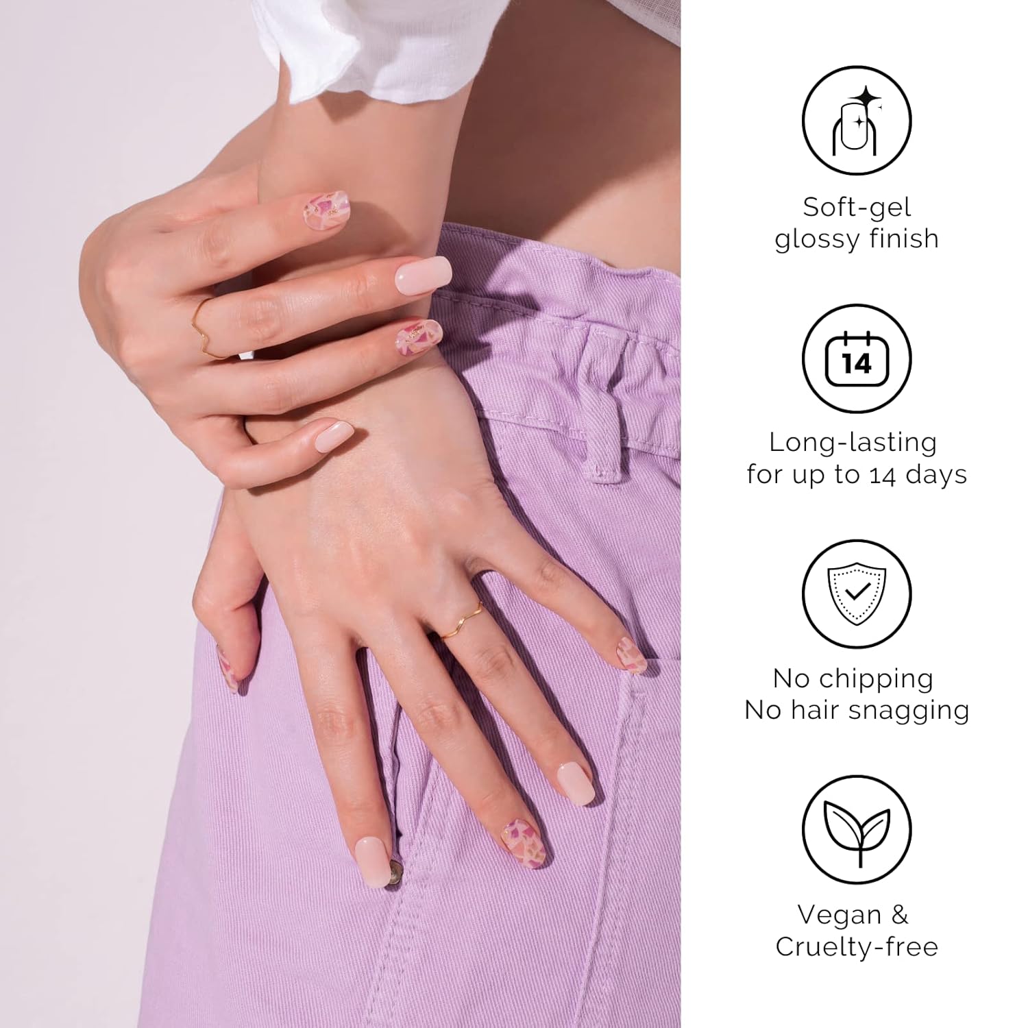Nailog Semi Cured Gel Nail Strips 34 pcs | Long Lasting Nail Polish Sticker Wraps with Glossy Gel Finish | Morning Dew