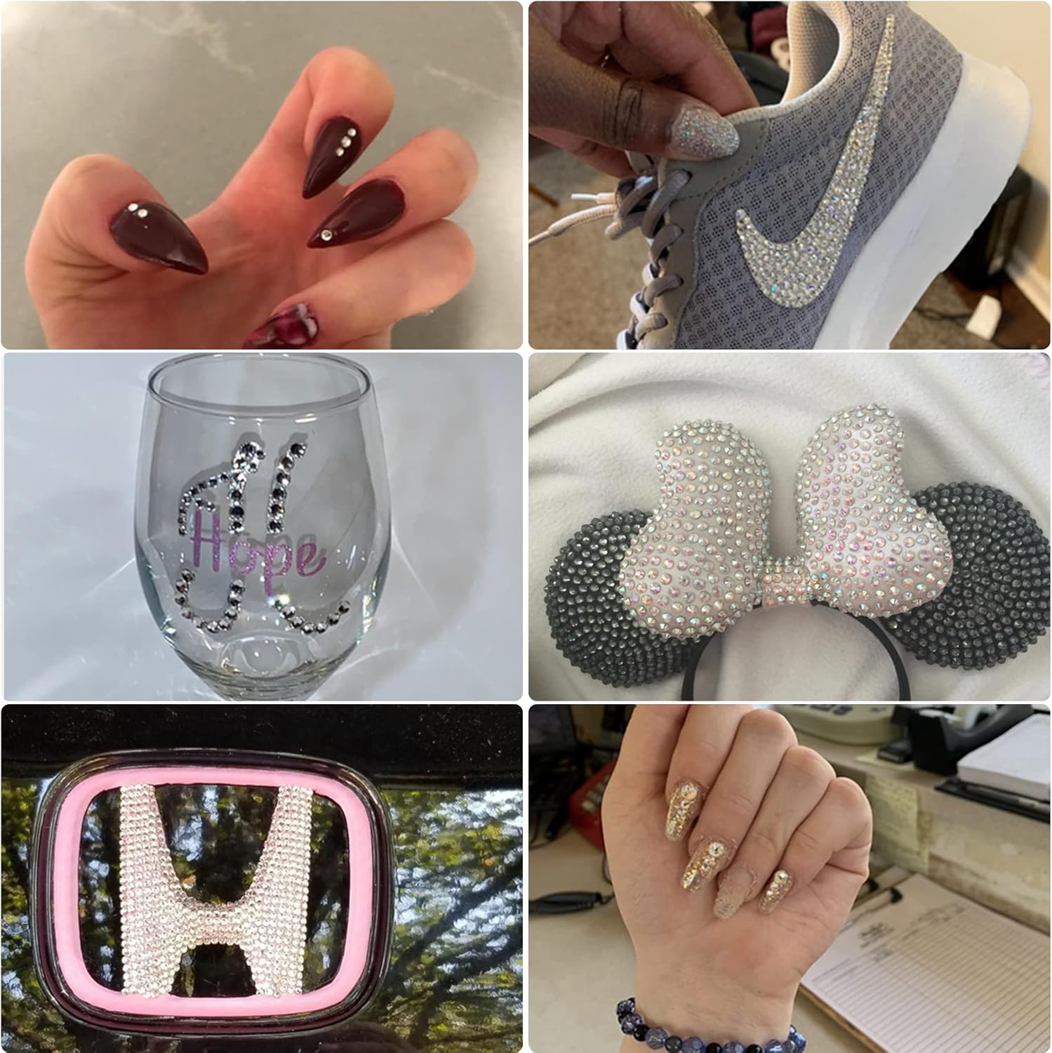 - Application: These rhinestones are great ideal for decorating many items including clothes, shoes, nail art, body art, mobile phone, bags,cups, bottle, mug, makeup, jewellery Etc. Adds sparkle and glamour to your decoration, providing different visual enjoyment to your daily life.