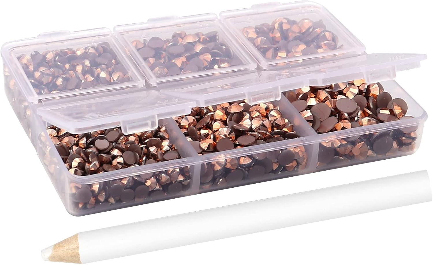 - 3 Sizes Rhinestones Set with Pick Up Pen: 2050 pcs per box. Round flat backs &Non Hotfix, SS10 (3mm) 1100PCS, SS16 (4mm) 600PCS / SS20(5mm) 350PCS.
