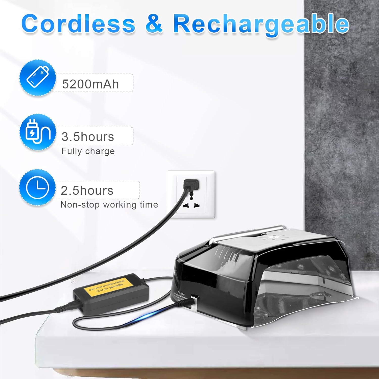 • 【Rechargeable Cordless Design】 This wireless UV light for nails built-in a 5200mAh battery, and the premium quality battery can be used for 3hours after being fully charged. This uv light for nails is a great choice for a manicure when there is no power outlet, you can take it anywhere you want.