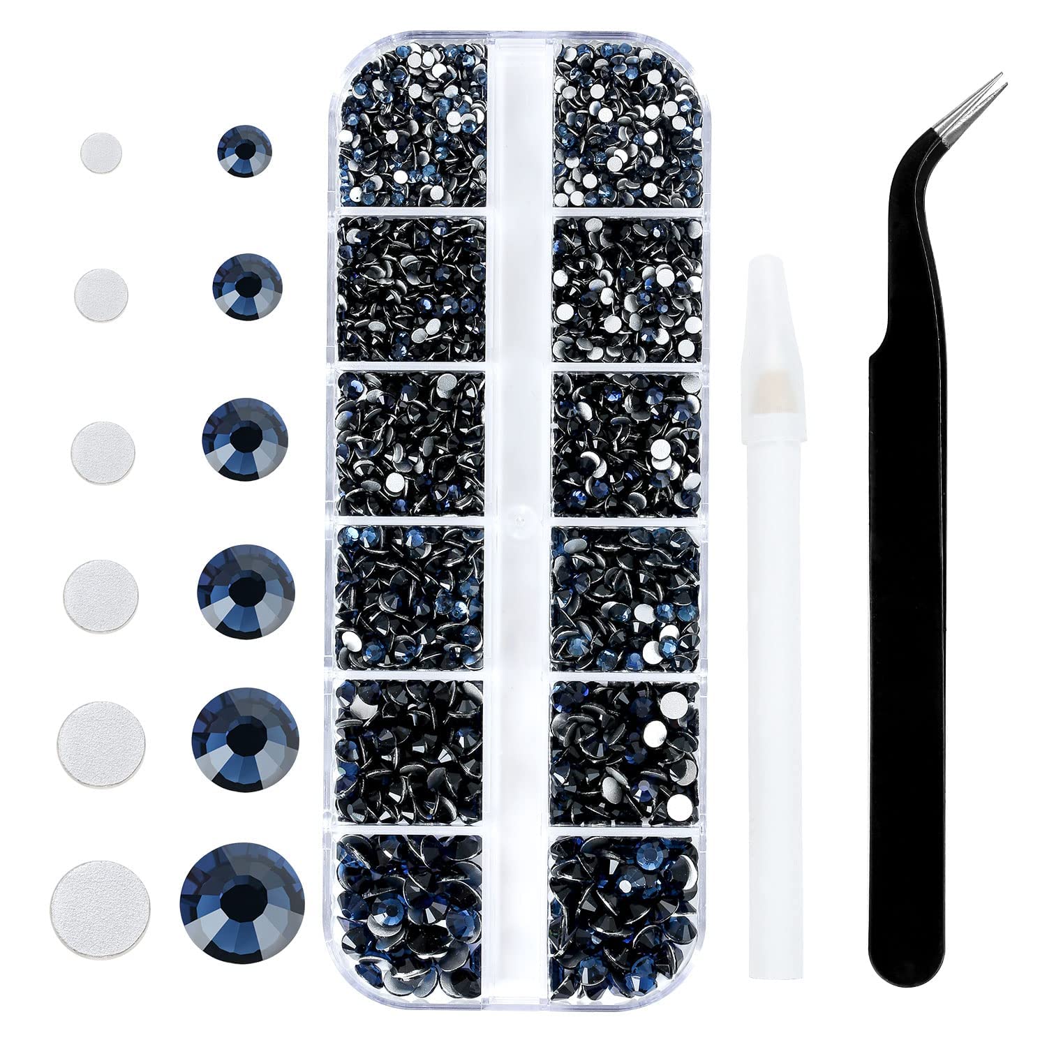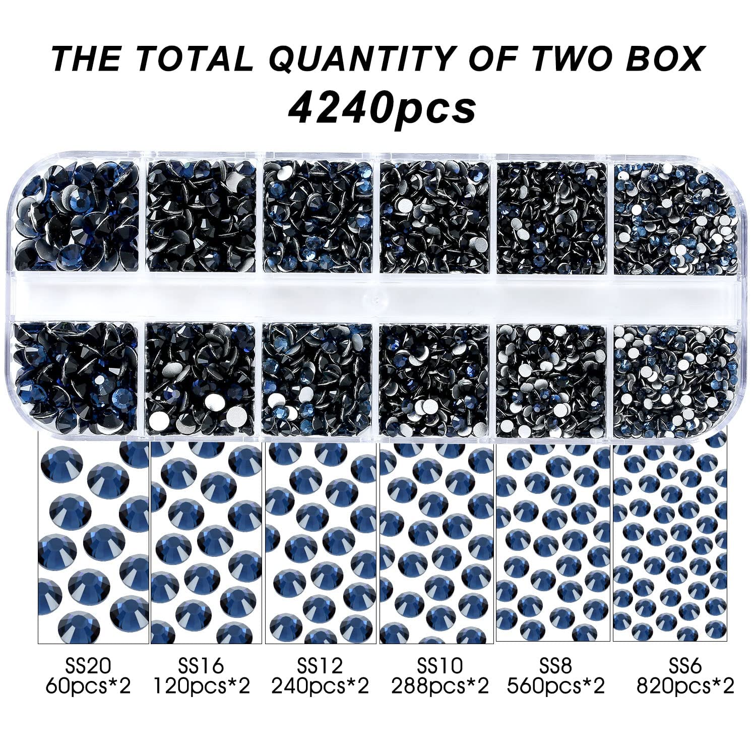 4240Pcs Montana Flatback Rhinestones 6 Sizes Crystal Diamonds for Nail Art Crafts Clothes Shoes with Tweezers and Picking Pen
