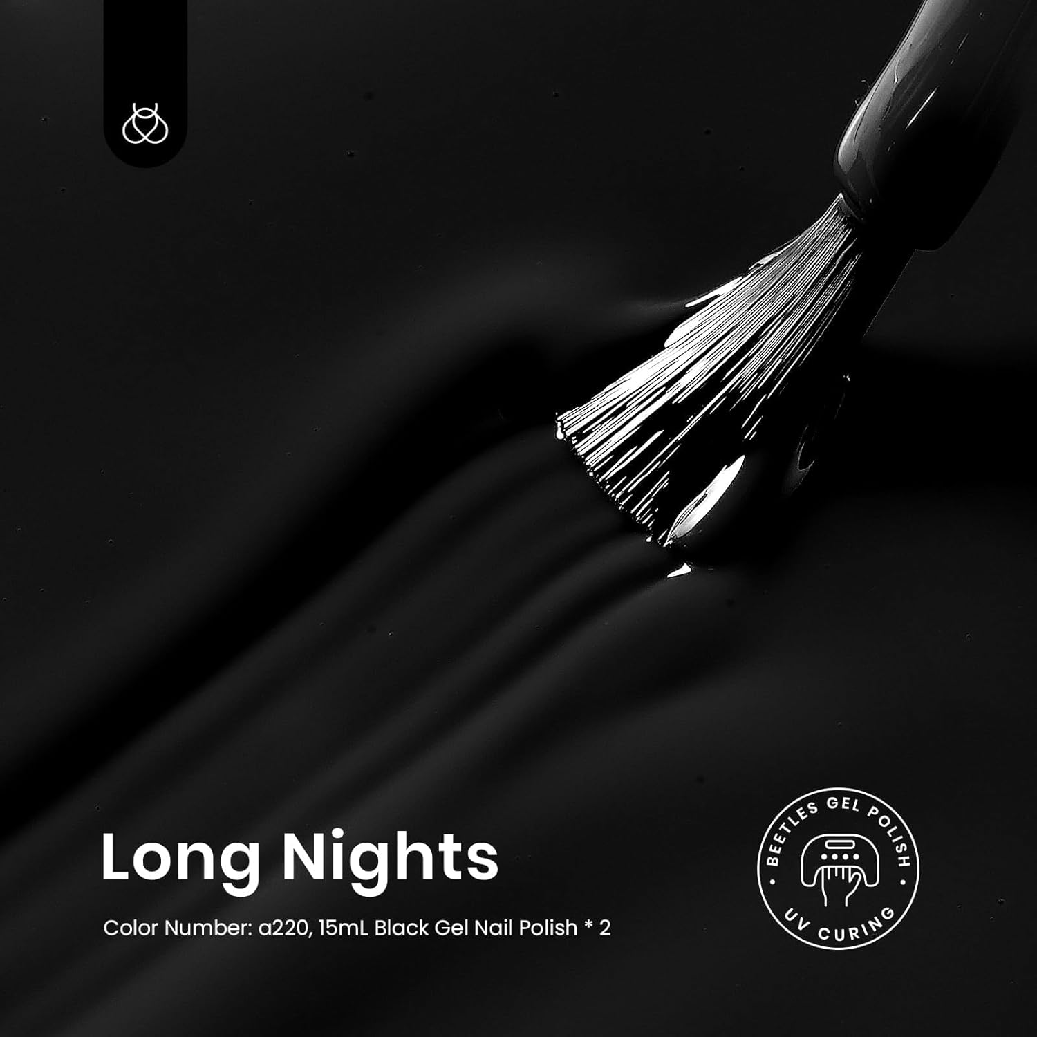 Beetles Black Halloween Gel Polish 2Pcs Pure Black Gel Nail Polish Set 15ml Dark Base Color Soak Off Uv Nail Lamp Art Manicure DIY Design Gift for Women Long Nights Collection