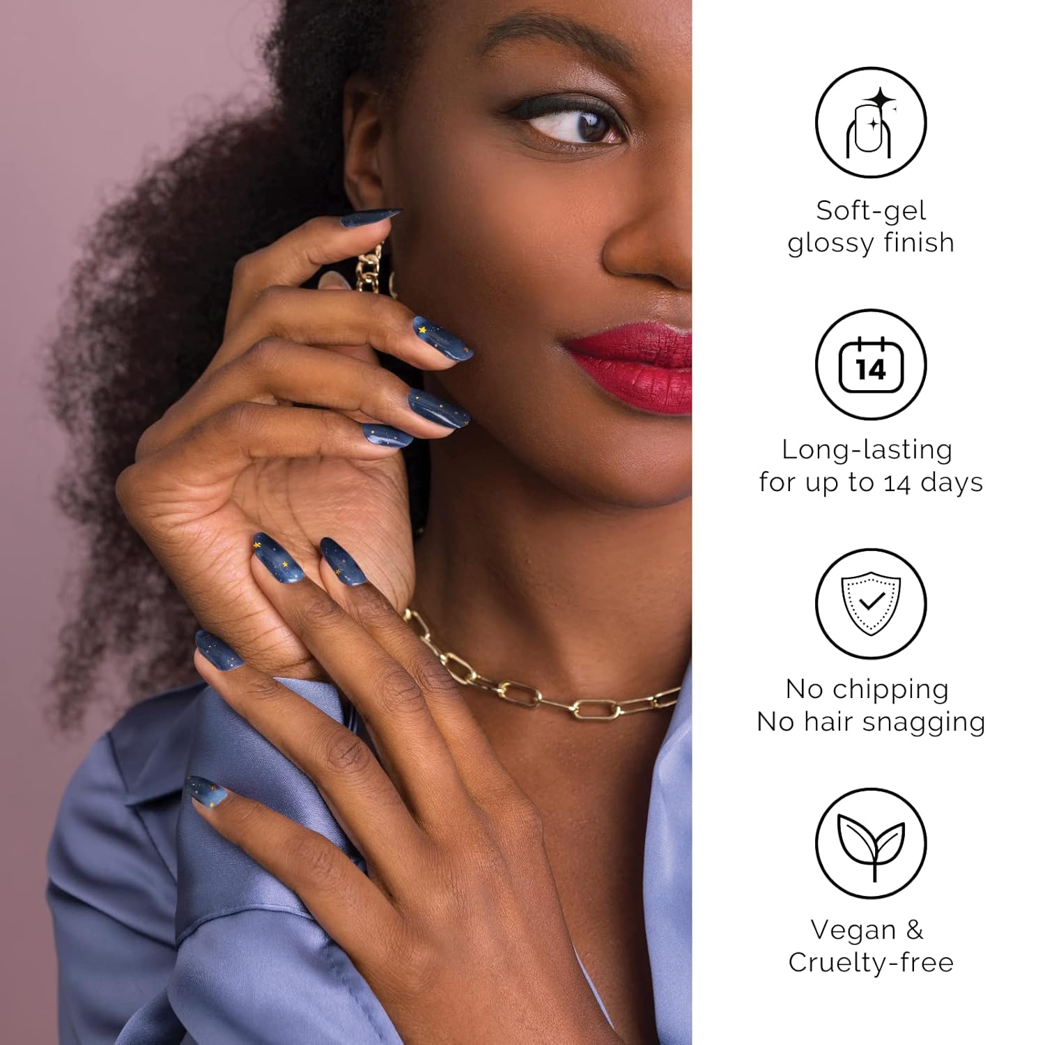 Nailog Semi Cured Gel Nail Strips 34 pcs| Long Lasting Nail Polish Sticker Wraps with Glossy Gel Finish, Starry Night