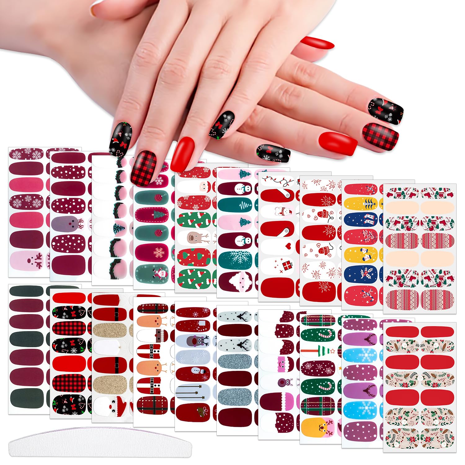 - ăVery Easy To Useă: Our Christmas full nail wraps are self adhesive , No drying time and sticky well. Chose any design you like and a size fited to stick on nails gently, and just peel it off when you want to remove it , nothing would hurt your nails but protect them ! (You can read the detalis of instruction in the descraption under this page)