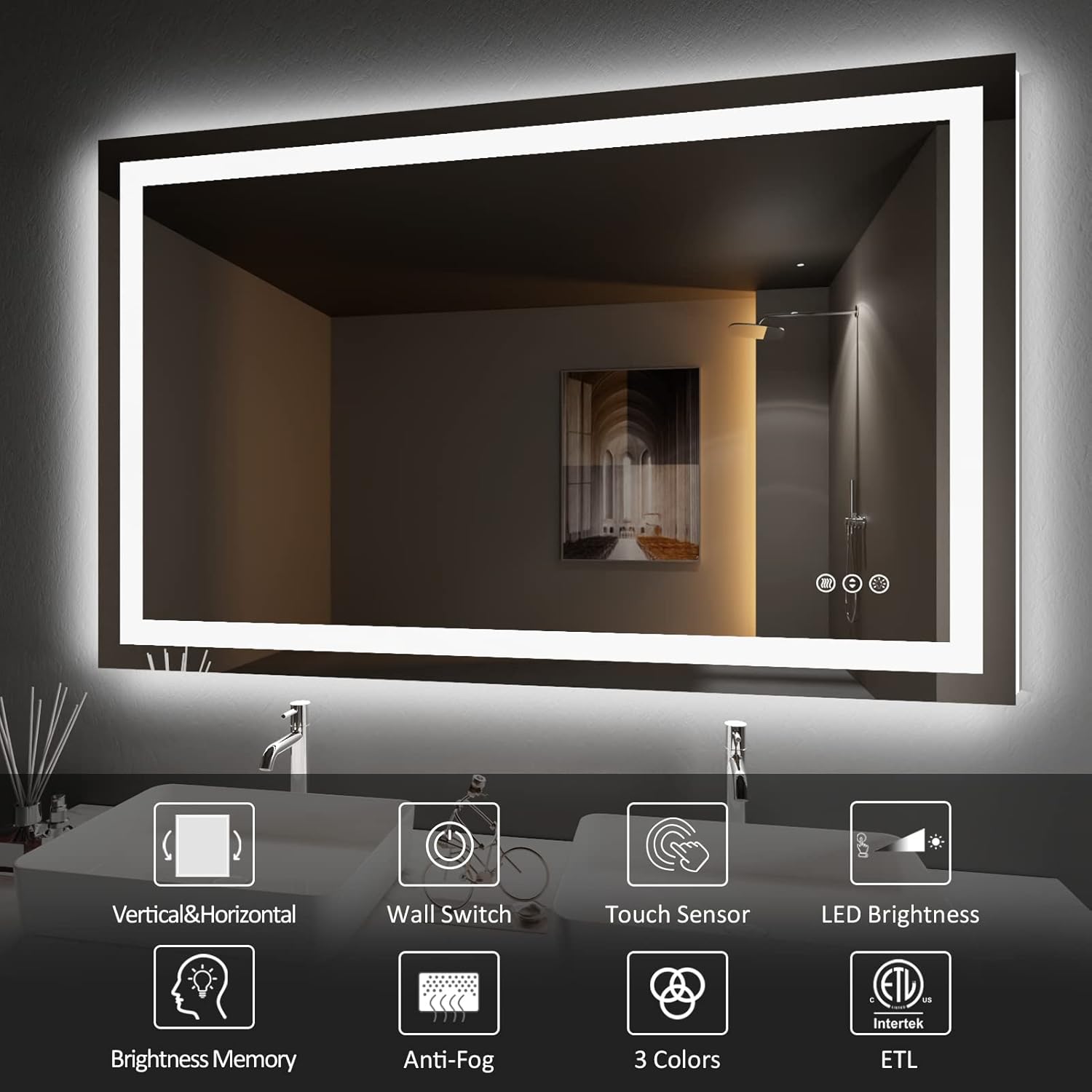 - [Double Lights & Super Bright]: With two built-in LED strip lights, Amorho LED bathroom mirror with front light and backlit both; The lighting is bright enough for makeup or shave or beauty care in your space