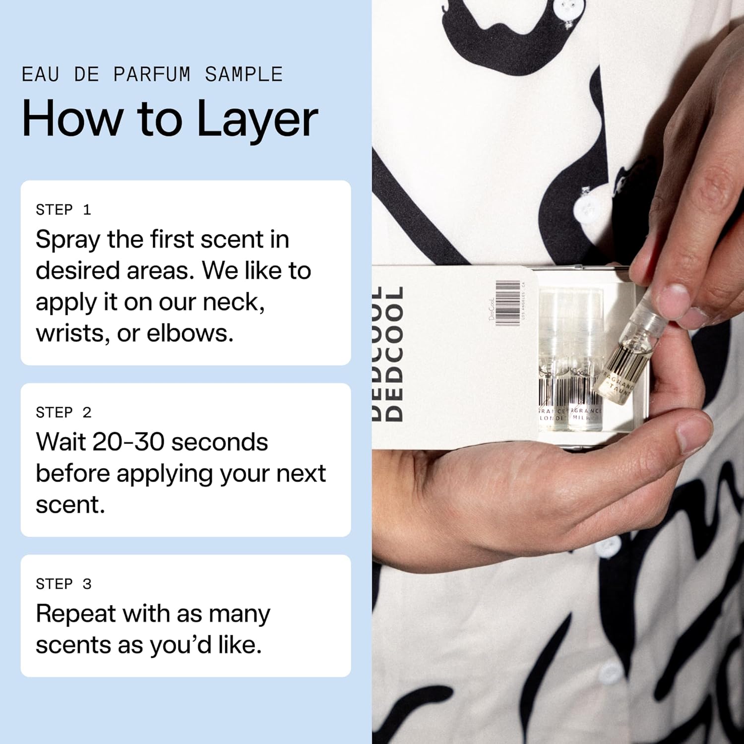 - FRAGRANCE DISCOVERY SET: Explore 6 DedCool minis in one reusable tin, featuring Xtra Milk, Milk, 01 Taunt, 03 Blonde, Madonna Lilly, and Red Dakota, perfect for sampling or gifting.