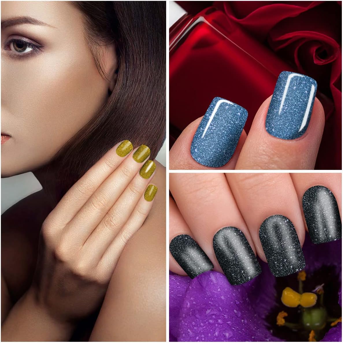 - [Luxury Glitter Nail Art] Fashionable glitter design, you can create different nail effects such as light color series, dark color series and ombre design series. match nail decoration, nail decals and other nail accessories. just need simple operation, you can get luxury and charming nail art.