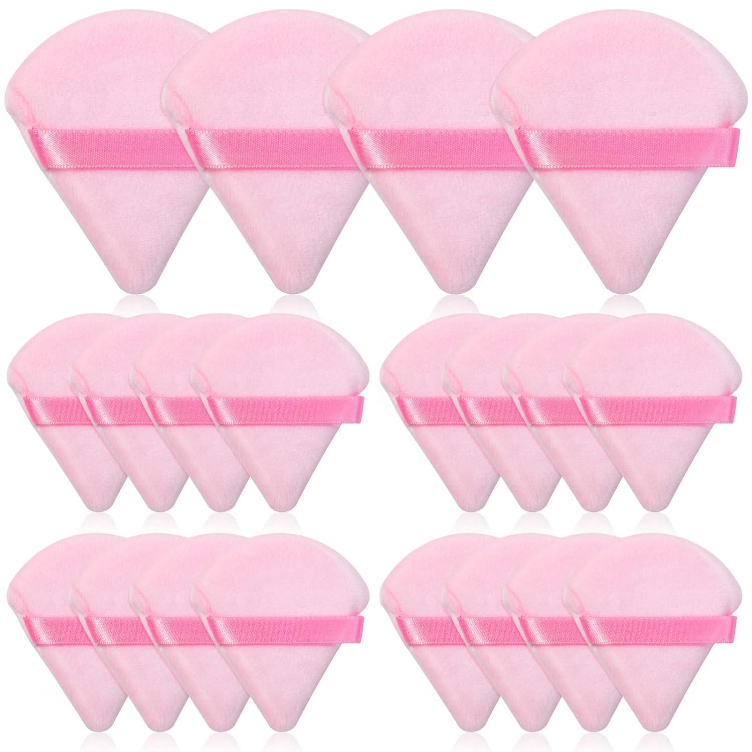Thrilez 20pcs Triangle Powder Puff, Loose Powder Puffs Makeup Puff for Face Powder, Setting Powder Puff for Make Up, Face Puff Pads for Press Powder, Sponge Powder Applicator for Face and Eye (Pink)
