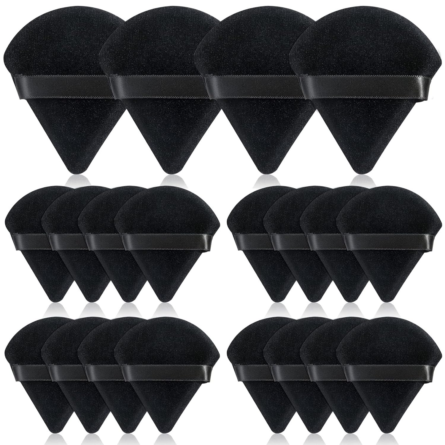 Thrilez 20pcs Triangle Powder Puff, Loose Powder Puffs Makeup Puff for Face Powder, Setting Powder Puff for Make Up, Face Puff Pads for Press Powder, Sponge Powder Applicator for Face and Eye (Black)