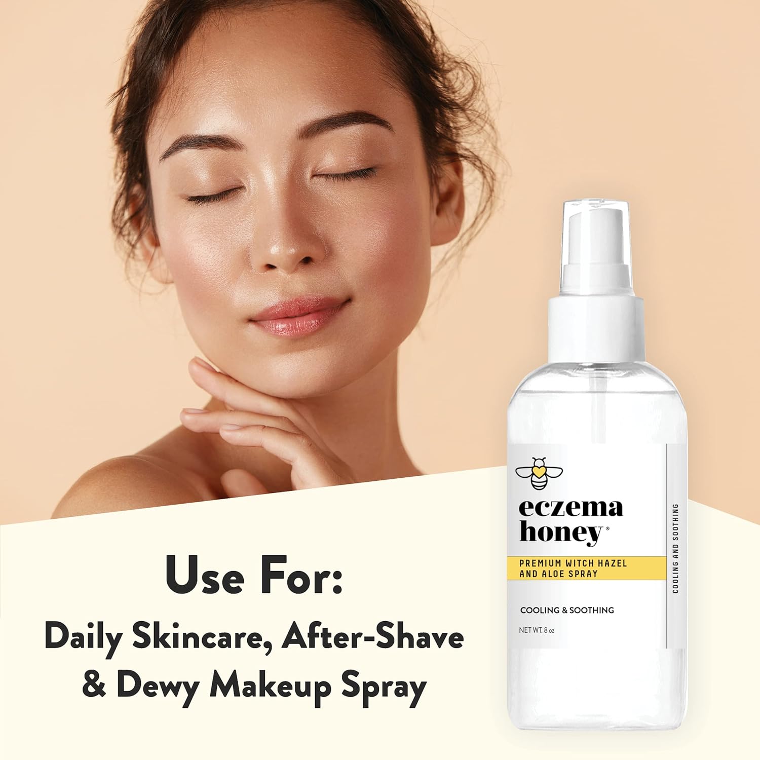 ECZEMA HONEY Premium Witch Hazel & Aloe Spray - Facial Mist Skin Care Product - Unscented Moisturizer, Dewy Makeup Spray, Aftershave & More (8 Oz)