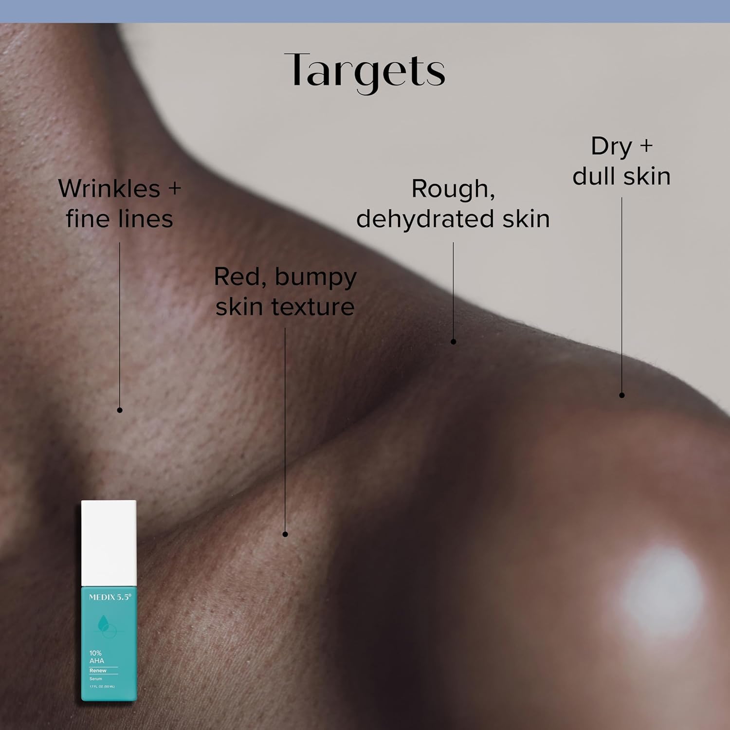 - FACE SERUM & BODY BOOSTER β Supercharge your regular skin care routine by adding this highly effective + concentrated 10% AHA Exfoliating Glycolic Acid Renew Face Serum & Body Booster formulated to be used by itself or combined with your favorite Medix 5.5 body moisturizer treatment cream, but can also be added to your favorite body moisturizer, body oil, facial serum, face moisturizer, etc.