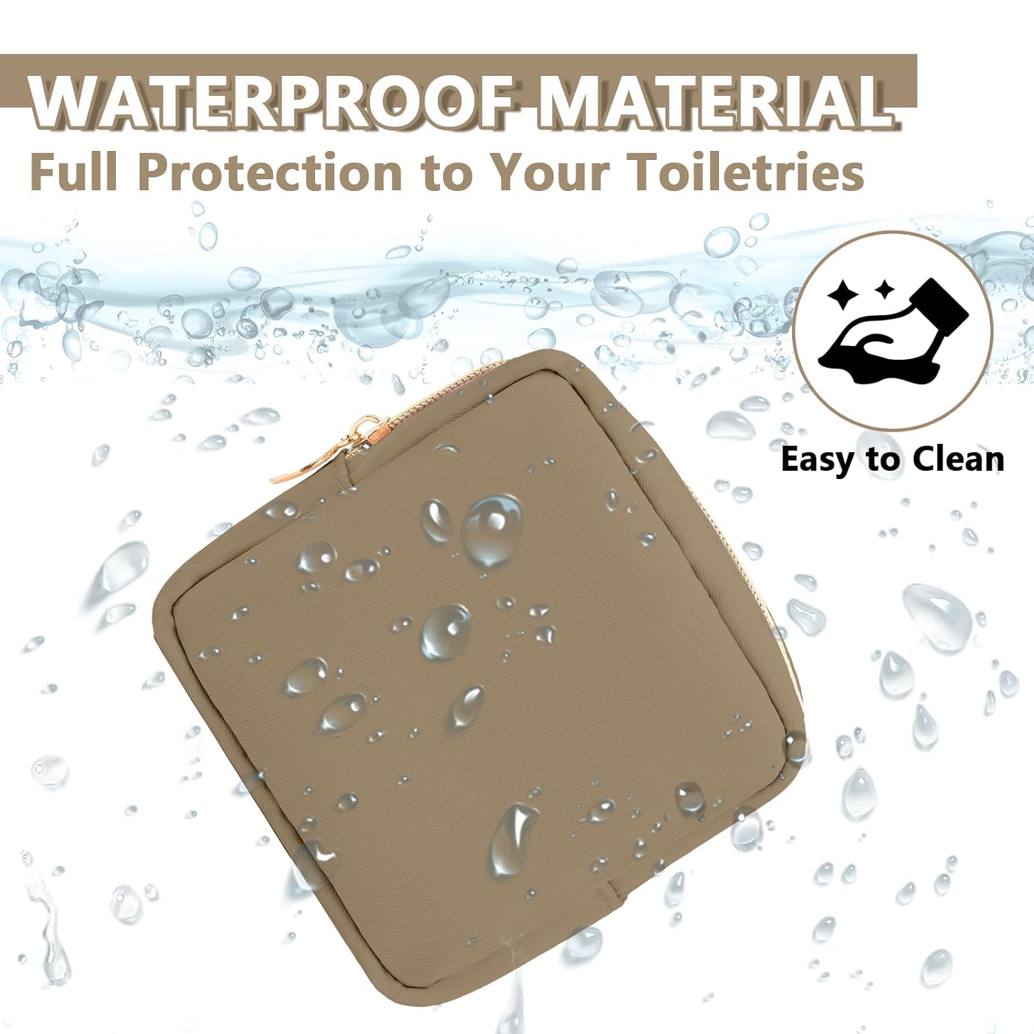 Mini Makeup Pouch for Purse, Small Cosmetic Bag Pouch Nylon Travel Toiletry Organizers for Women Girls, Cute Zipper Pouch Coin Purse Preppy Storage Bag for School Work(Mini-Khaki)