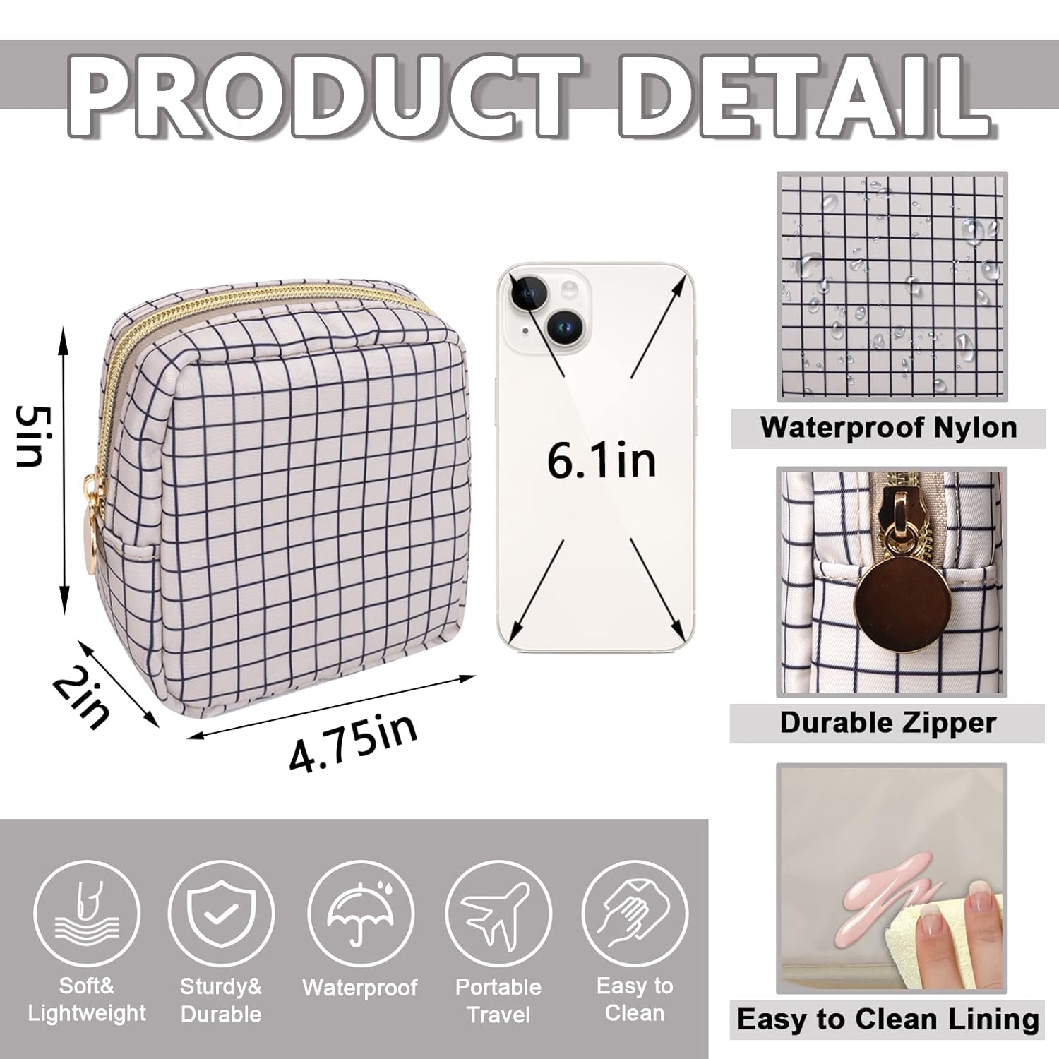 Mini Makeup Pouch for Purse, Nylon Travel Toiletry Organizers Small Cosmetic Bag for Women Girl, Checkered Cute Zipper Coin Purse Preppy Storage Bag for School Work(Mini-Checkered)