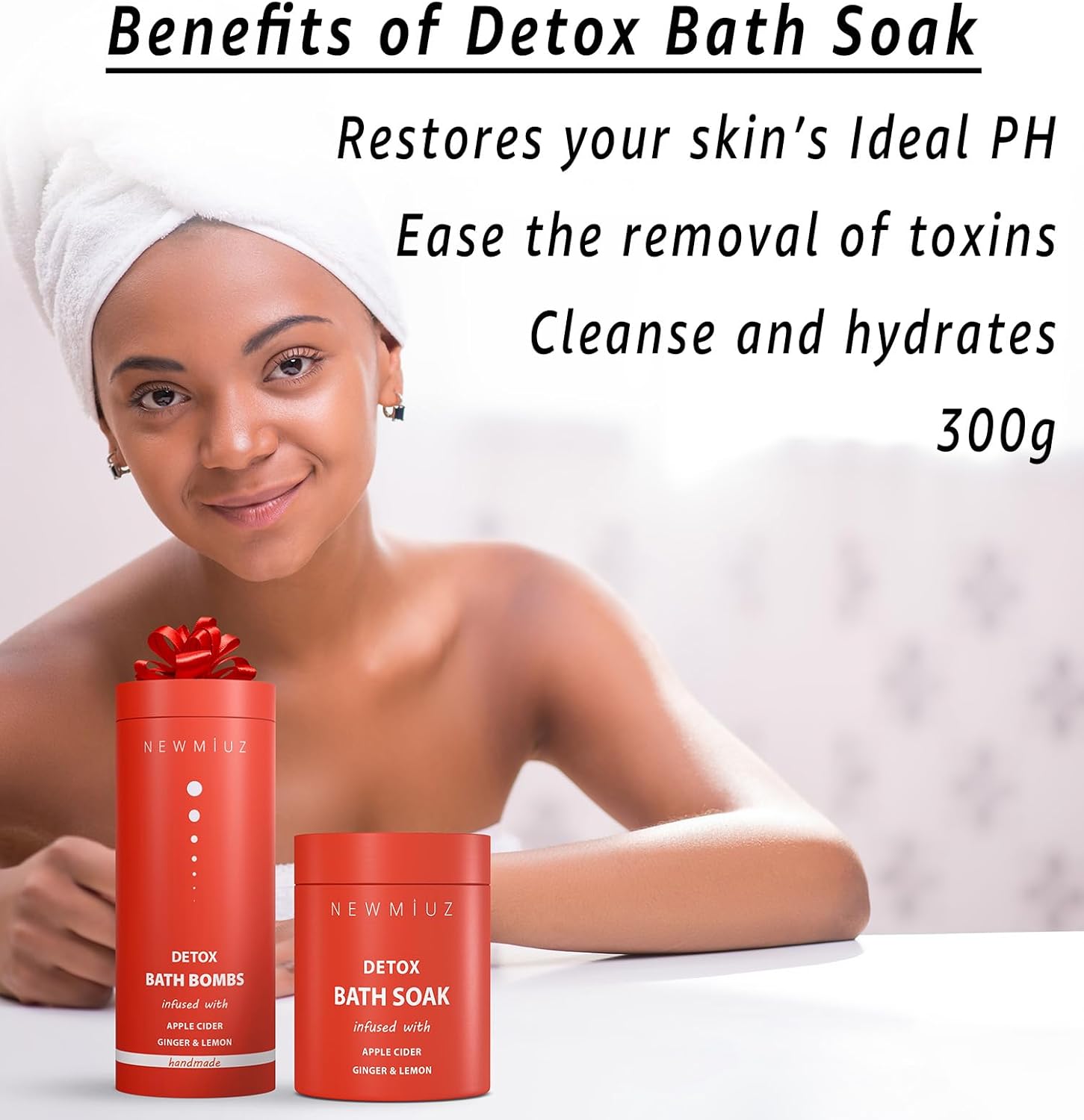 - Revitalize with Exfoliation: The detox bath salts gently buff away roughness and dry patches, unveiling smoother skin. Infused with natural anti-aging minerals, it works to diminish fine lines and wrinkles, while restoring the PH balance of your rejuvenated skin.