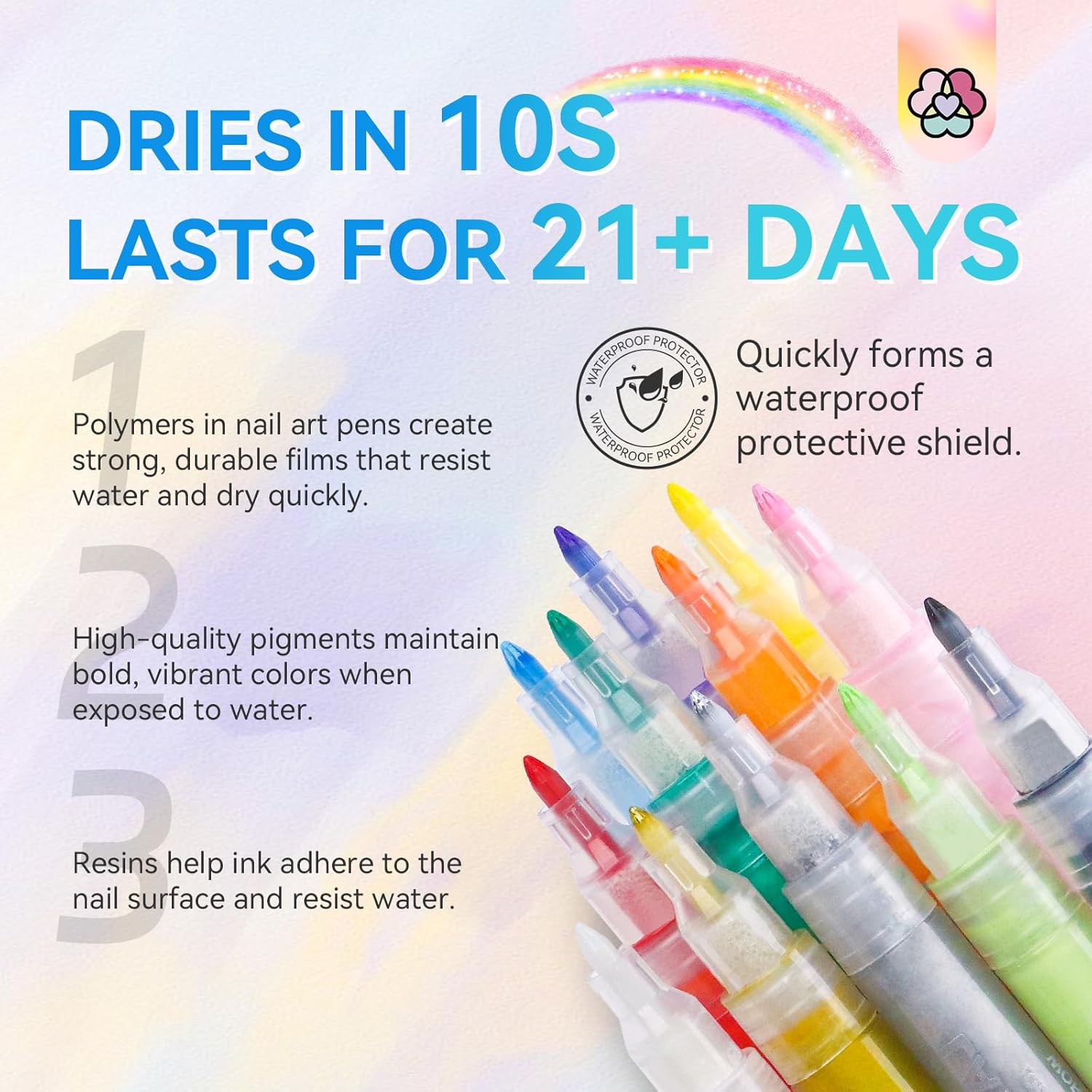 - LONG-LASTING & DURABLE: Saviland nail polish pens for nail art deliver long-lasting and durable results that won't chip or fade over time, even when exposed to water, heat, or humidity. This is vital for nail art, as it ensures that your designs stay intact and vibrant for longer periods.