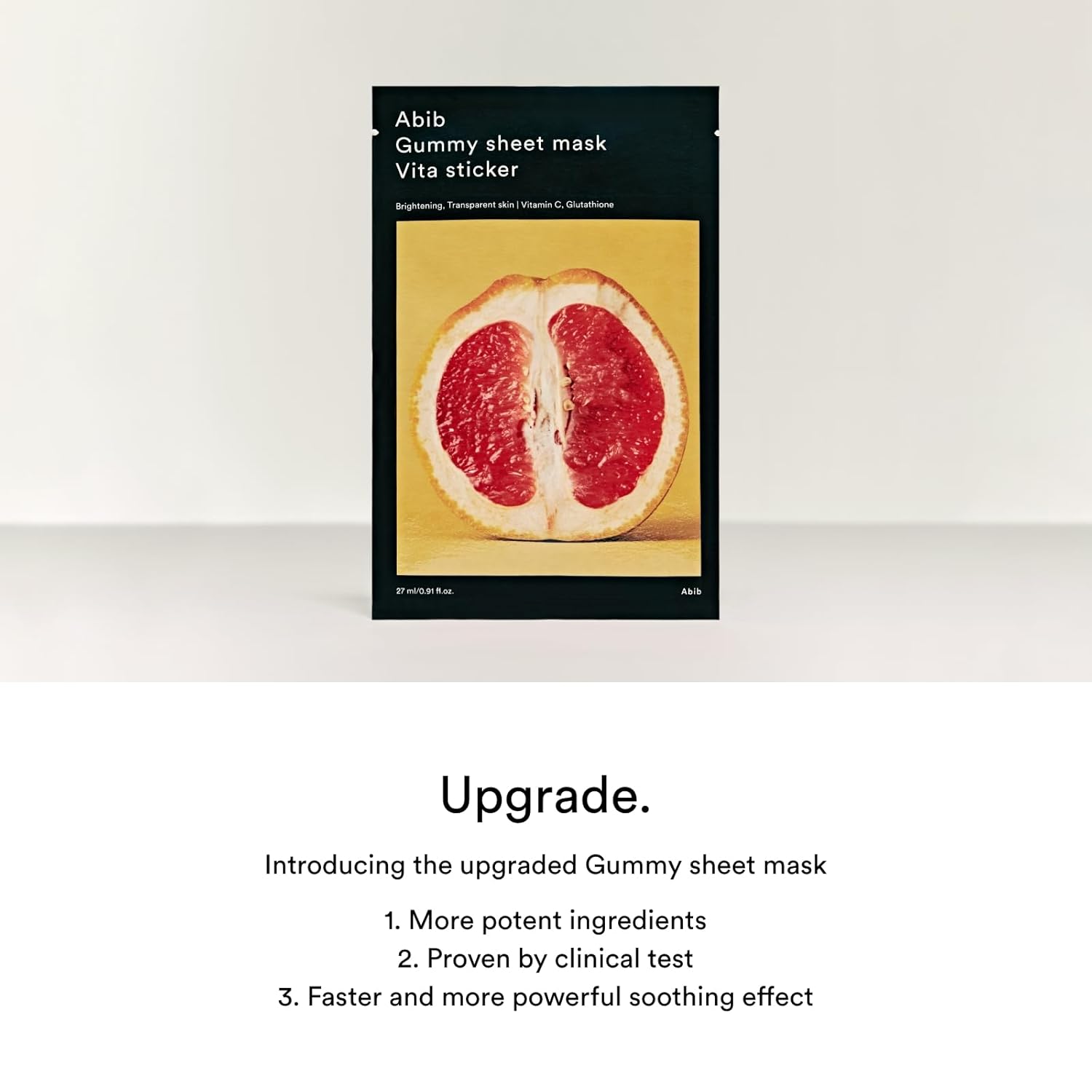Abib Gummy Sheet Mask Vita Sticker(10 sheets) IBrightening & Soothing Sheet Mask with Niacinamide, Cica, Peptides & Vitamin Complex, Korean Skincare for Sensitive Skin