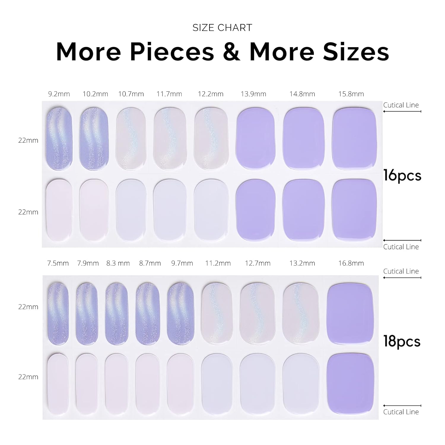 - ă34 PCS NAIL STRIPSăMore Quantity & Sizes than Ever! - With 17 different sizes of our nail art stickers, you can easily find the right size to match your nails. - New curved side line fits even better with your nail shape for seamless adhesion.